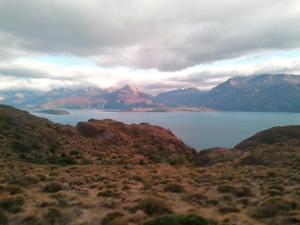 Wir kommen in Chile Chico an, eine schöne kleine Stadt, direkt vor den Pforten der Anden. Es sieht wirklich ein bisschen so aus, direkt nach dem Dorf steigt die Straße steil an und verschwindet zwischen hohen Felsen. Rechts daneben ist ein Aussichtspunkt, von dem man bei gutem Wetter einen schönen Blick auf den See hat.
