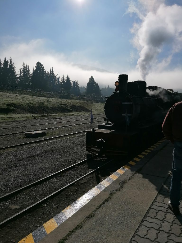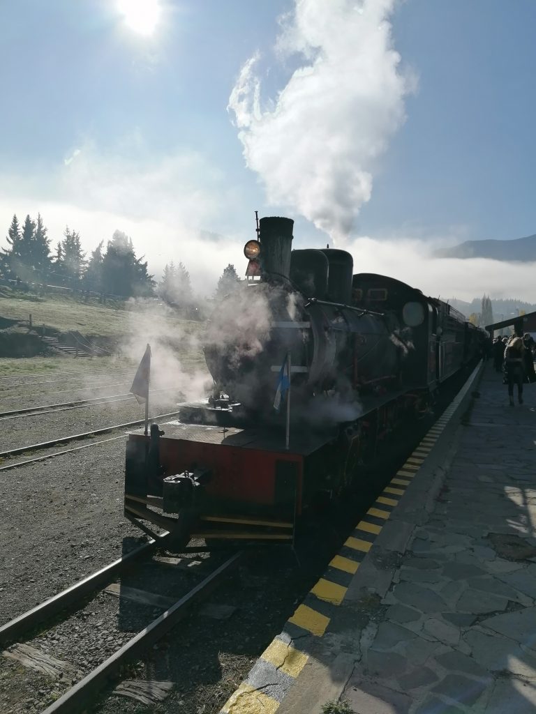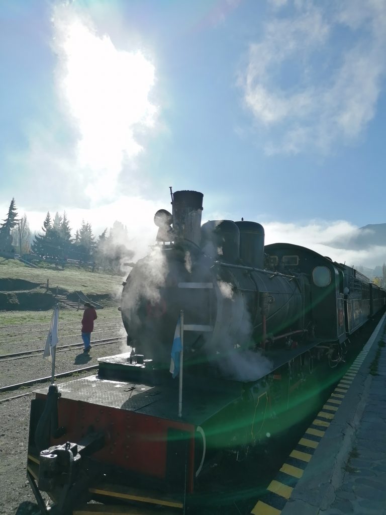 Ich trete aus dem Terminal und… keine Ahnung, was kann man den hier überhaupt machen? Vorhin habe ich meinen argentinischen Chip wieder ins Handy eingesetzt, sodass ich gleich meine googl’sche Geheimwaffe zücken kann. Nicht weit entfernt gibt es einen historische Zugstation und wenn man in der Richtung weiter geht, gibt es ein paar Aussichtspunkte. Das klingt doch ganz gut. Ich spaziere los zur Zugstation. Als sie in Sicht kommt, höre ich ein verdächtiges Pfeifen… kommt da etwa grade der Zug an? Ich sehe in die Richtung… und tatsächlich. Ich sprinte die Stufen hoch zum Bahngleis, wo bereits einige Schaulustige mit gezücktem Handy stehen. Ich ziehe auch meines hervor um die wunderschöne, pfeifende, qualmende, alte Dampflock zu fotografieren, die langsam in den Bahnhof einrollt. So viel Glück muss man erstmal haben!