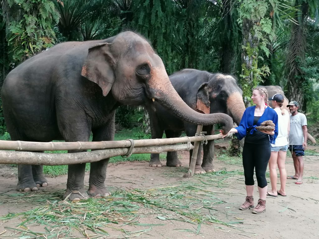 Elefantentouren in Thailand sind wieder so eine Sache: Wo ist der Mittelweg zwischen Tierwohl und Touristenattraktion? Das muss natürlich jeder für sich entscheiden. Am besten für das Tierwohl ist es, wenn man in Nationalsparks auf Elefantensuche geht und die Tiere in ihrer natürlichen Umgebung vom Fernglas aus beobachtet, ohne jeglichen Kontakt. Was meiner Meinung nach heutzutage wirklich nicht mehr zu tolerieren ist, sind Elefanten-Reit-Touren. Sehr unangenehm für das Tier und ich verstehe den Kick dabei nicht.