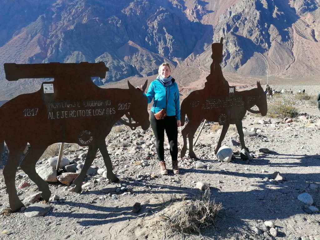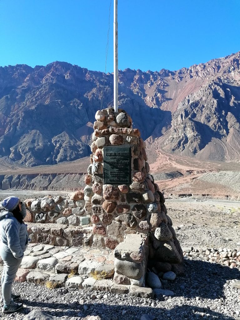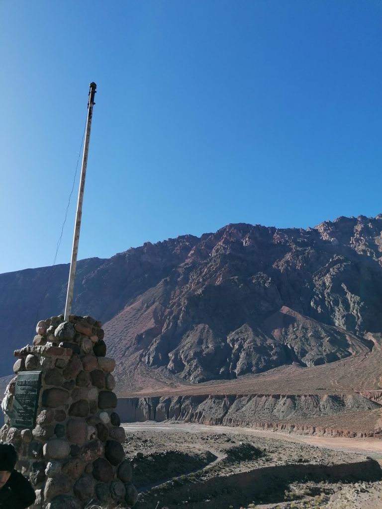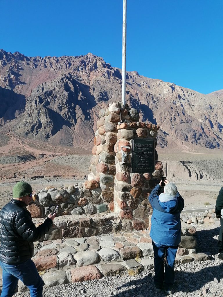 Es stört nur, dass es ein sehr touristischer Punkt ist. Danach fahren wir weiter durch die Berge, passieren kleine Orte, in denen man im Sommer campen kann, bis zu einem historischen Punkt, wo vor etwa 300 Jahren „San Martin“ die Anden überquert und später Chile befreit hat.