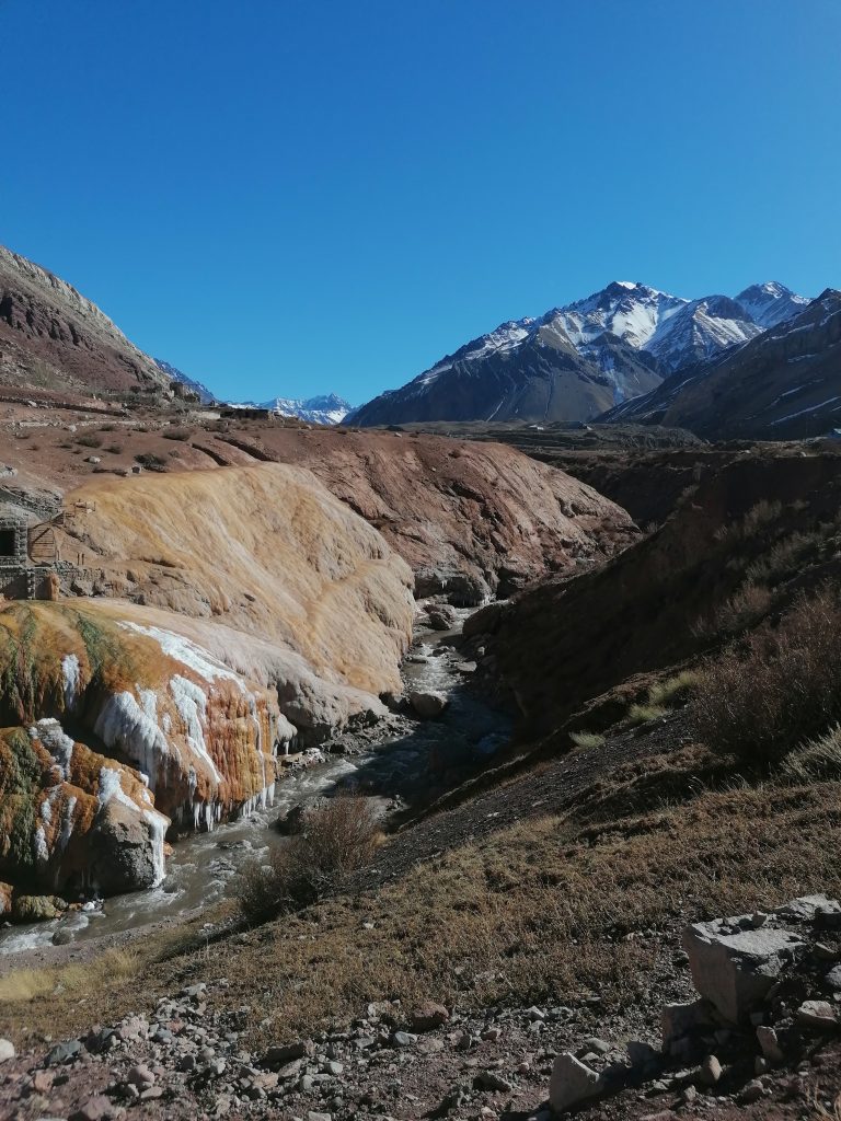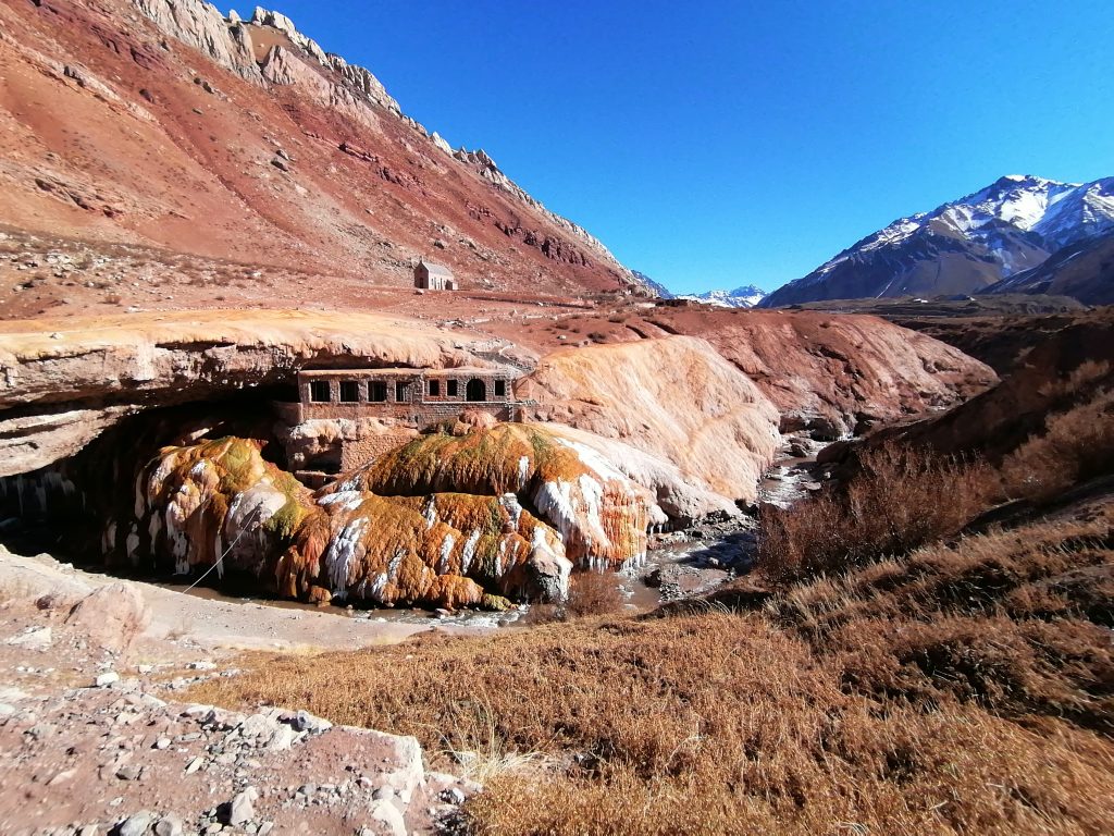 Die Puente de los Incas (Inka-Brücke). Wir sind hier übrigens auf über 2700 Metern Höhe und ich spüre es ein bisschen im Kopf. Es ist ein Schwindelgefühl und ich merke auch, dass die Luft weniger sauerstoffhaltig ist. Aber alles in allem, geht’s.