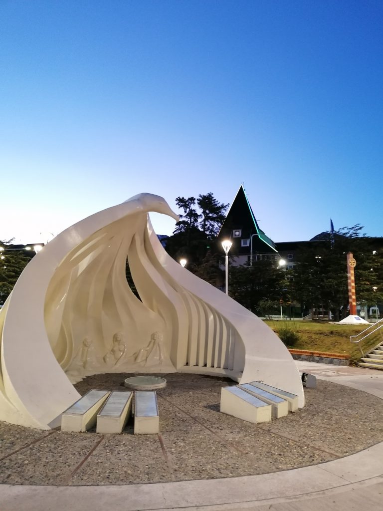 Hier sind noch ein paar Eindrücke aus der Stadt selbst: Die Statue des „weißen Feuers“ ist das Monument der fin der mundo und zollt den Ureinwohnern Respekt:
