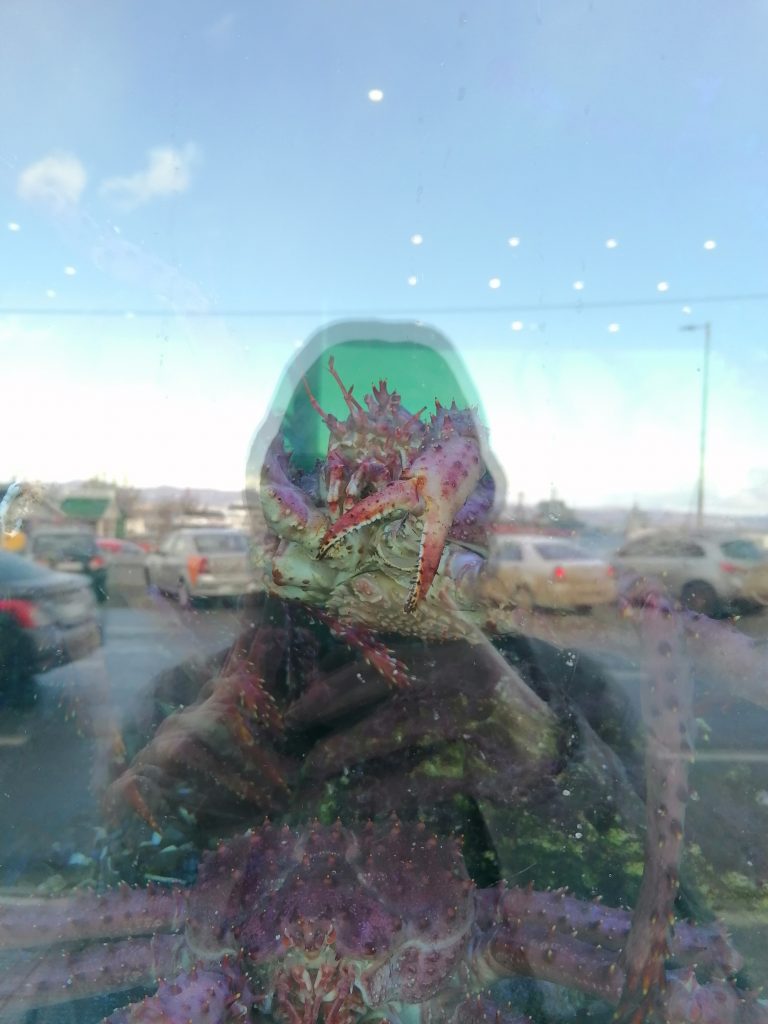Als ich durch die Straßen laufe, komme ich an einem Restaurant vorbei, dass die Spezialität dieses Ortes anbietet: Königskrabbe. Eine besonders große Krabbe, offenbar einzigartig für Ushuaia. Ab 28.000 Pesos (Aktuell um die 50 Euro…tatsächlich nicht mal soooo teuer, dafür dass es eine Delikatesse ist) aufwärts, kann man sich seine Krabbe aus dem Aquarium aussuchen und sie wird direkt frisch zubereitet… Hm, rückblickend hätte ich es vielleicht doch probieren sollen. Aber ich war noch nie der Schalentier-Fan und 28.000 Pesos sind für mich fast eine Woche im Hostel. So beobachte ich die Krabben nur von außen, wie sie im Aquarium hin und her schaukeln und gelegentlich mit den Scheren schnappen.