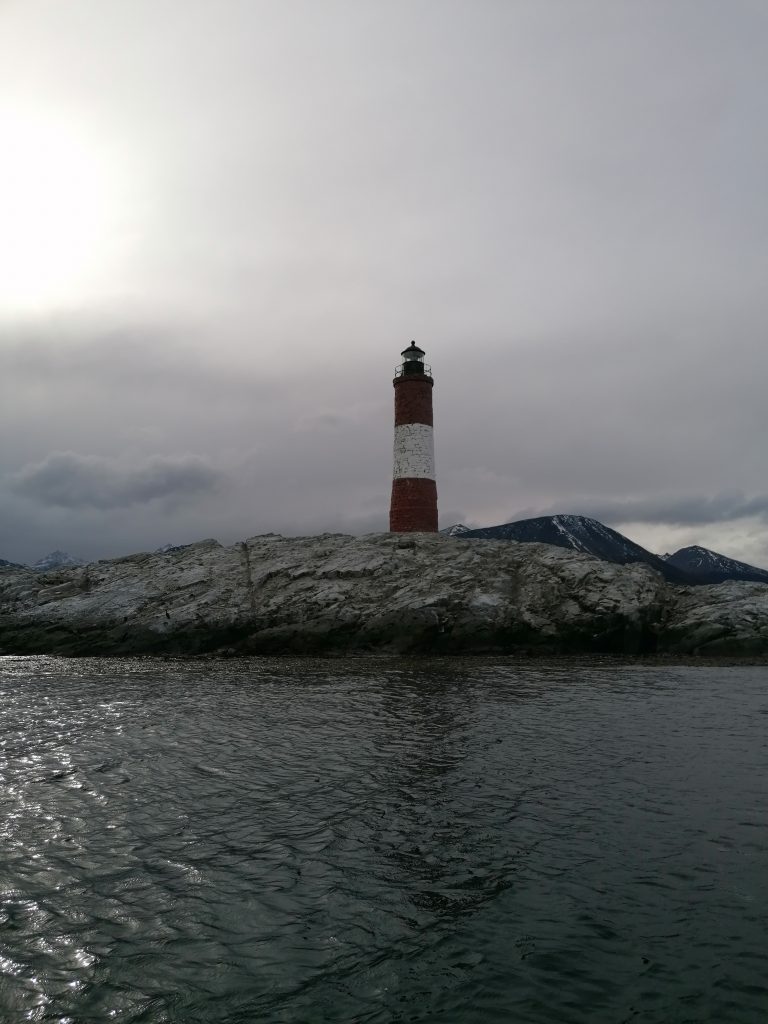 Erster Stopp ist der Leuchtturm del fin del mundo (am Ende der Welt). Der Kapitän erklärt uns warum, es der Leuchtturm am Ende der Welt ist: Das hier – er hält sein Fernglas hoch – ist das Fernglas am Ende der Welt, das hier – er zeigt auf seinen Mate – ist der Mate am Ende der Welt, ich – er zeigt auf, okay, ist klar – bin der Kapitän am Ende der Welt: Alles hier ist am Ende der Welt!!!