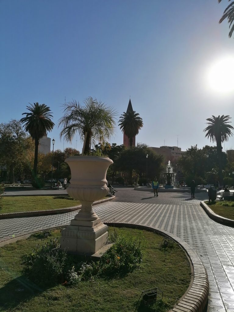 nach meinem Ausflug in ein Land vor unserer Zeit lasse ich den nächsten Tag ganz entspannt angehen. Check-out ist um 11, sodass ich mich vor 10 nicht aus dem Bett bewege. Ich packe meine Sachen, checke aus, frühstücke ganz entspannt und setze mich dann seit Urzeiten mal wieder an den Blog. Damit verbringe ich auch fast den halben Nachmittag, bis ich mir endlich einen innerlichen Tritt verpasse und mir San Juan anschaue. Zuerst hole ich mir mein Busticket nach Catamarca, der Bus geht erst um 23 Uhr, ich habe also noch den ganzen Tag. Ich schlendere in Richtung Zentrum und gehe von Stadtpark zu Stadtpark, von denen San Juan wirklich viele schöne hat. Viel anderes mache ich an dem Tag nicht, ich lasse einfach die schöne Innenstadt auf mich wirken.