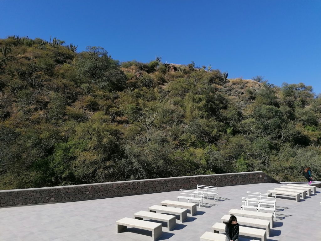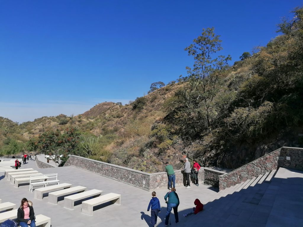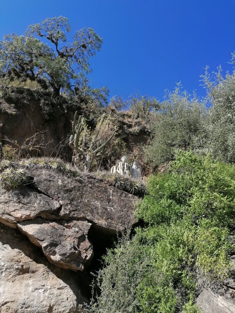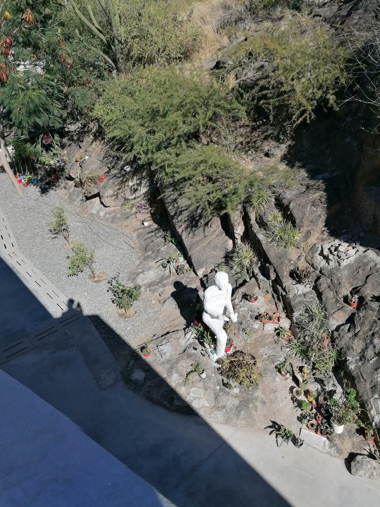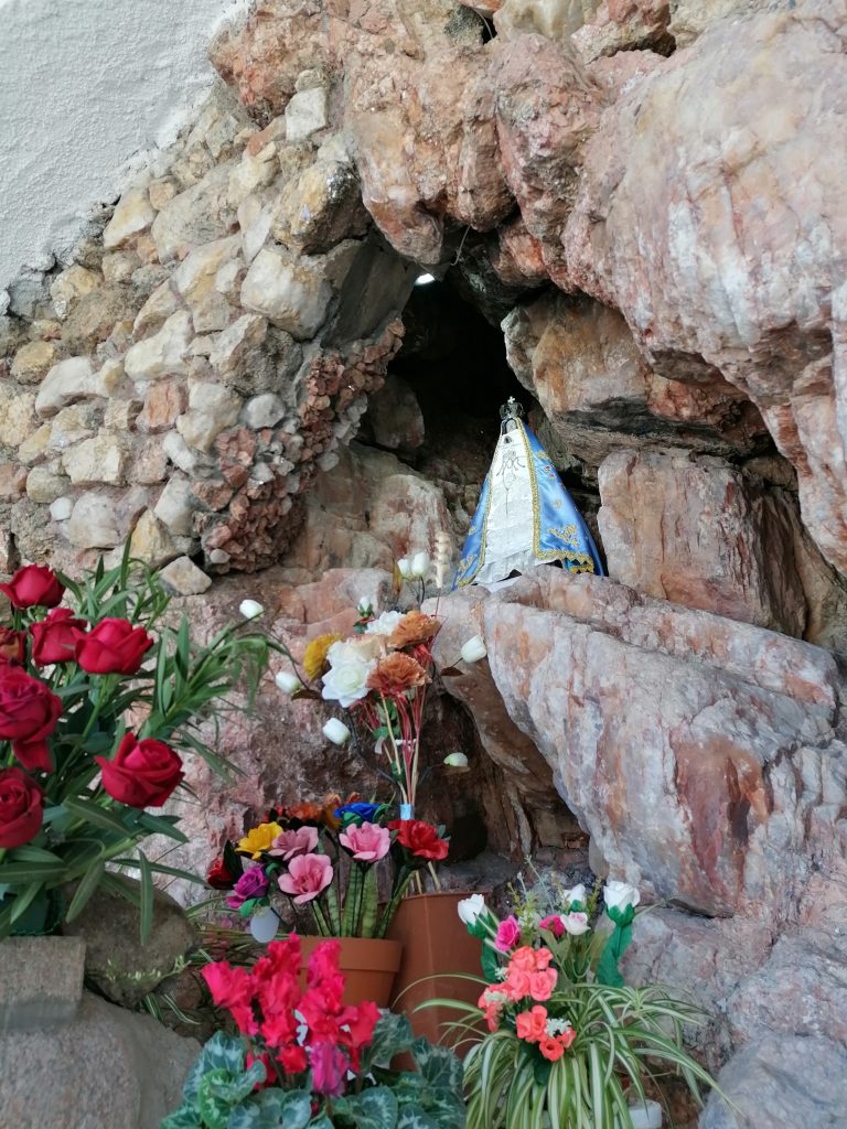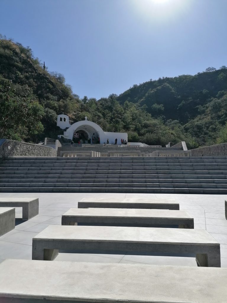 Na gut. Was kann ich hier denn sonst so machen? Ich schaue mir die Flyer vom Tourismuszentrum an und finde zwei Sachen, die ich gerne anschauen würde. Ich zahle mein Frühstück, laufe durch die Stadt zur angezeichneten Bushaltestelle und steige nach kurzer Wartezeit und einem leicht aufgezwungenen Gespräch in den Bus. Wir fahren quer durch die Stadt bis die Häuserblocks sich ausdünnen zu einem Ort, der „Virgin de la Gruta“ heißt. Dort steige ich aus und laufe den restlichen Weg bis zum Ziel. Es handelt sich hier bei um den Fundort einer Marienskulptur, nach der sämtliche Kirchen benannt sind. Man hat den Fundort – die kleine Grotte – in einen Altar umgewandelt, den Vorplatz vollständig planiert und zugänglich gemacht für jede Art von Besucher, sowie Bänke aufgestellt, sodass dort regelmäßig auch Gottesdienste und Messen gehalten werden können. Ein richtig schöner Ort dafür.