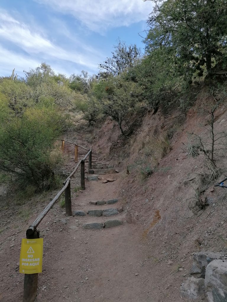 Ich bleibe allerdings nicht lange, will ja noch zu dem anderen Ziel fahren. Bald kommt der Bus und wir fahren zurück nach Catamarca. Dort muss erst ein bisschen suchen/warten, bis ich die richtige Haltestelle finde. Währenddessen schreibt mir die Gastgeberin meiner Unterkunft, ob ich nicht doch schon jetzt den Schlüssel holen kann. Ungern, bin grade auf dem Sprung, aber wenn’s nicht anders geht, dann halt jetzt. Sie antwortet so was wie „passt schon, bis später“. Ich fahre also zu meinem zweiten Tagesziel, diesmal aus der anderen Richtung raus aus der Stadt. Es wird bald grüner, waldiger und schließlich setzt mich der Bus auf der Landstraße ab, kurz vor einem schön hergerichtet Campingplatz und neben einem kleinen Museum.