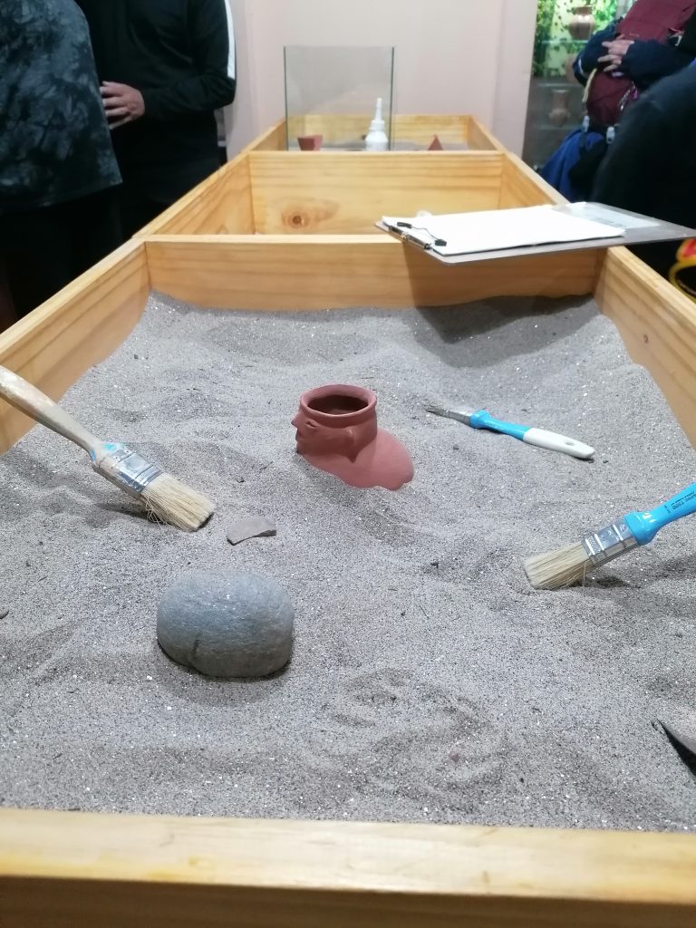 Die dürfen wir noch kurz genießen, dann geht es wieder nach unten und ins Museum, wo uns der Guide die einzelnen Funde erläutert. Es geht über die Architektur, die Ernährung (hauptsächlich Mais, Hülsenfrüchte etc.), die Kunst, Metall und Keramik, sowie Waffentechnik mit Pfeilspitzen. Einige der Keramikschalen waren Opferschalen mit dem Gesicht des Geopferten aufgezeichnet… bizarr… aber eben eine andere Kultur.