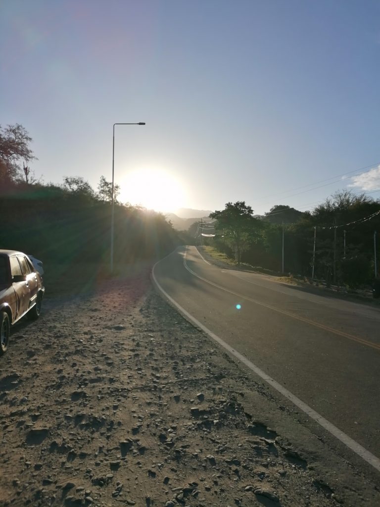 Dann setze ich mich auf die Bank in der Bushaltestelle (Luxus, dass es sowas überhaupt gibt) und befreie meine Füße aus den Wanderschuhen. Ohhh, das tut gut. Das letzte Mal, als ich meine Füße über 48 h in den Schuhen hatte, war mir eine Lektion. So verbringe ich die nächsten 30 min mit ausgestreckten Füßen und sehe der Sonne beim sinken zu. So lässt es sich angenehm auf den Bus warten. Dann fahre ich wieder zurück in die Stadt, steige aber bald aus, weil mein Apartment näher am Pueblo Perdito liegt, als am Stadtzentrum. Hm, allerdings finde ich die Adresse zuerst nicht. Dort, wo Google den Pfeil gesetzt hat, sind nur andere Hausnr. Erst danach finde ich heraus, dass die Straße nach einem Schulgebäude weiter nach oben geht, dort finde ich das Haus.