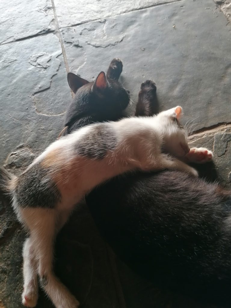 Mein Wecker klingelt früh, ich schleiche mich aus dem Schlafbereich und mache mich fertig für die Weiterreise. Der Morgen ist schön, ich bin für mich alleine, nur eine Katzenmama spielt mit ihrem Baby vor sich hin. Ich mache mir Frühstück, habe dann nochmal kurz Zeit zum Strand zu gehen.