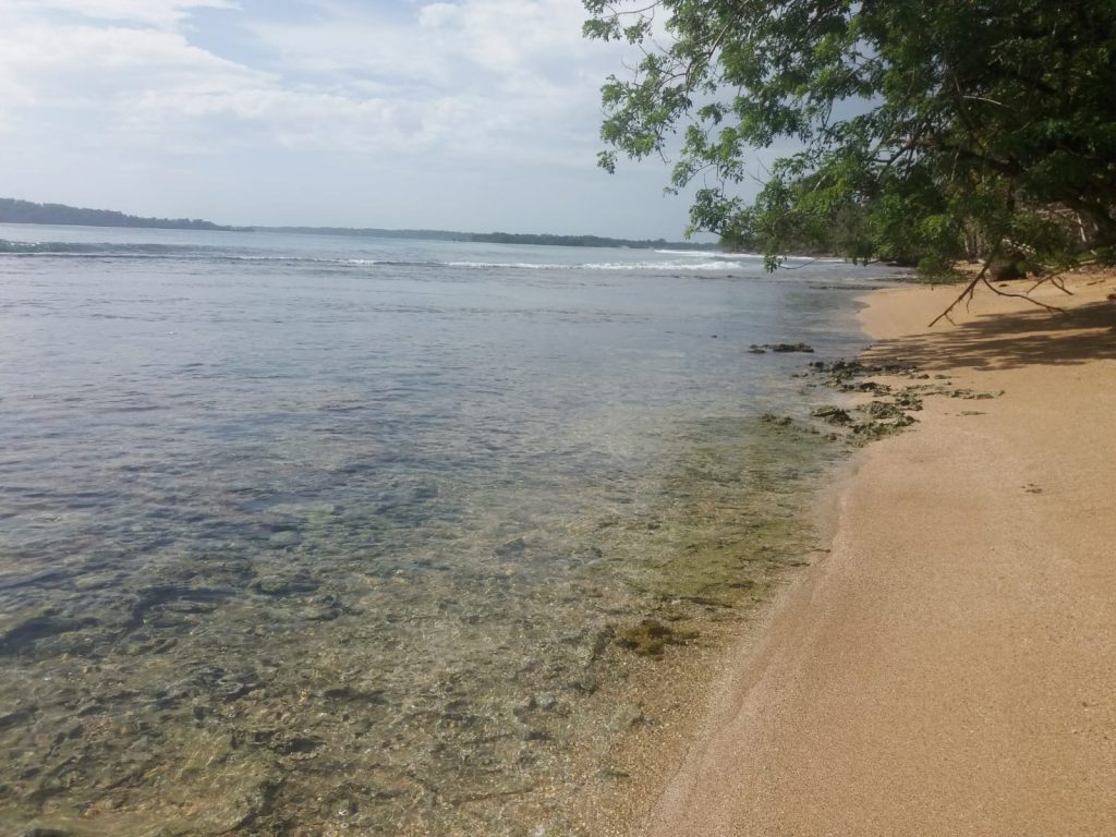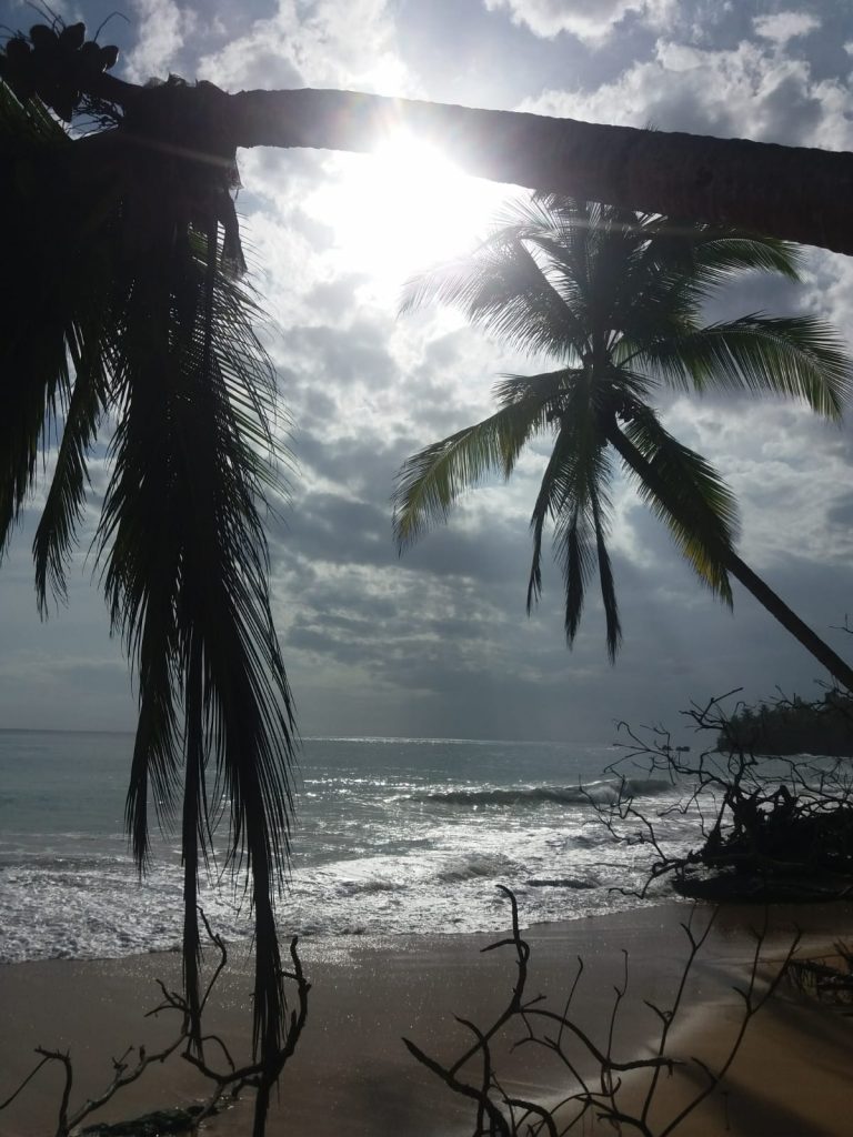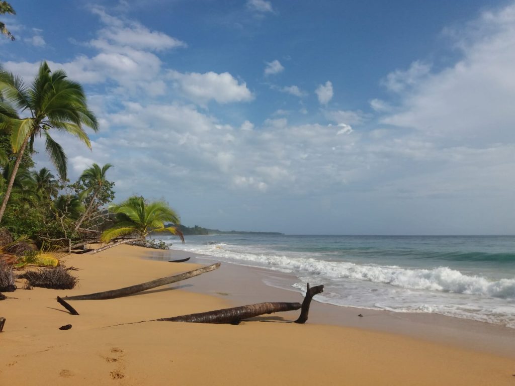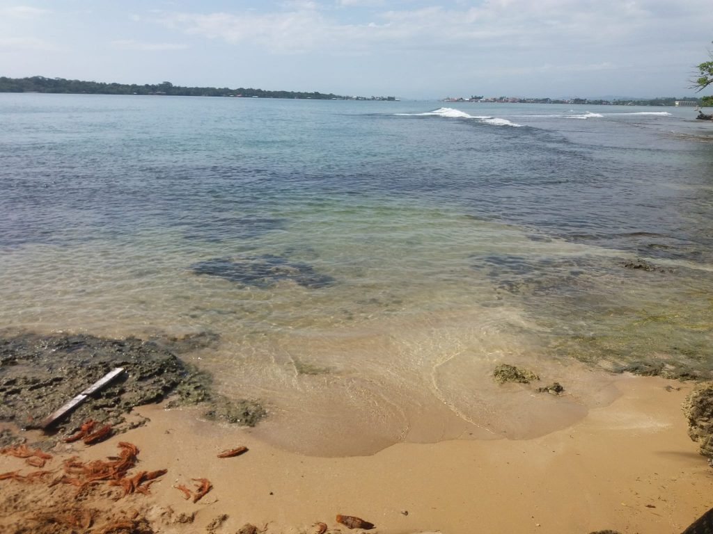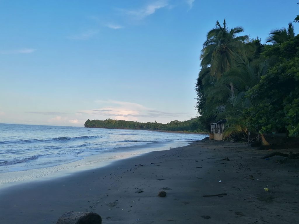 Der nächste Morgen ist deutlich besser. Ich beschließe, die Gelegenheit beim Schopf zu packen, schmeiße mich in meine Joggingsachen und laufe los, immer am Strand entlang. Es ist herrlich… aber heiß. Eigentlich wollte ich viel früher aufstehen, jetzt ist es schon fast zu warm. Aber ich gehe es langsam an. Mein Ziel ist ein Strand, der etwa eine Stunde Spaziergang entfernt ist. Joggend bin ich schneller. Der Playa Bluff ist ein großer Strand, an dem ich soweit das Auge reicht, völlig alleine bin. Ich ziehe die Hose und das T-Shirt aus, gehe im Bikini ins Wasser… aber kaum weiter als knietief. Die Wellen hier sind ziemlich stark und ziemlich hoch und das so nahe am Strand. Nur einmal wage ich mich fast bauchtief ins Wasser, als sich eine drei Meter hohe Welle vor mir aufbaut und mich sehr schnell unsanft wieder an den Strand befördert. Keine Chance. Also setze ich mich wie Ariel die Meerjungfrau an den Strand, die Beine im Wasser, der Rest draußen, bis ich den Rückweg wieder antreten muss. War trotzdem ein sehr schöner Ausflug.