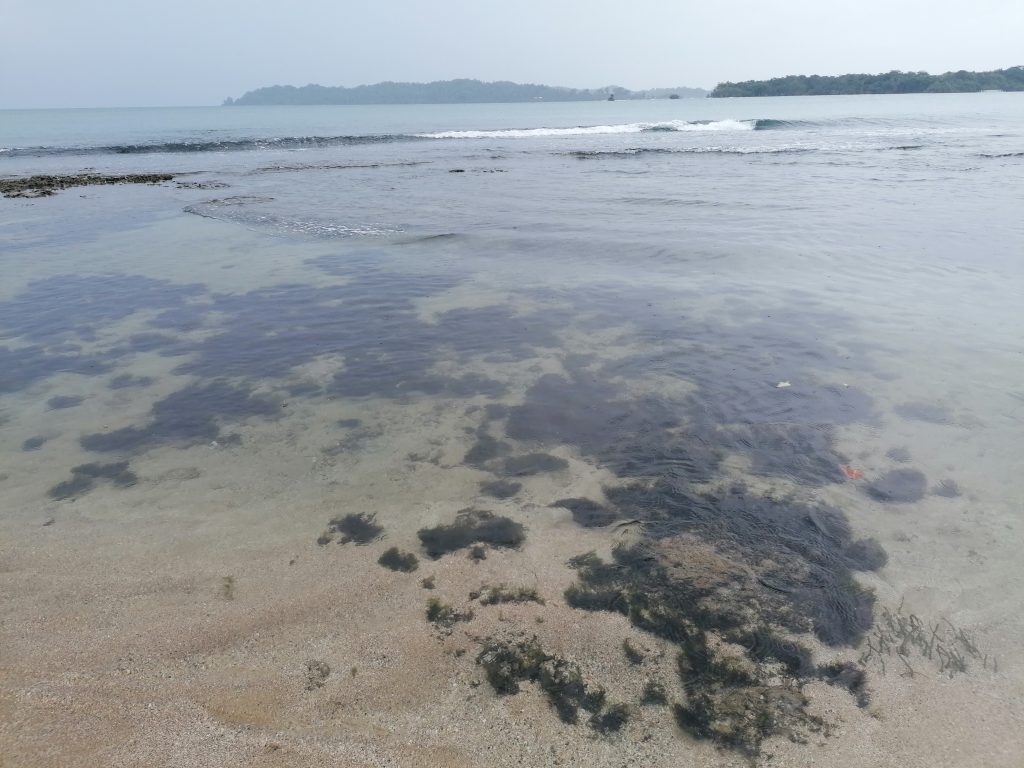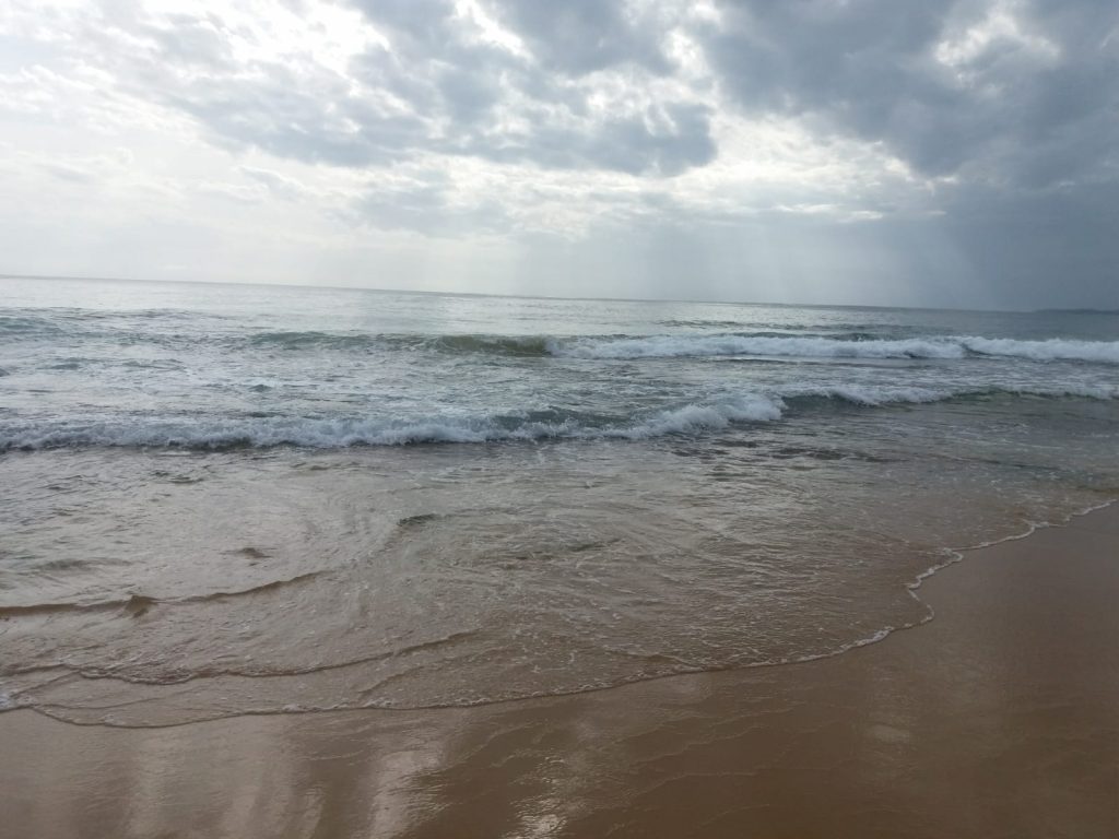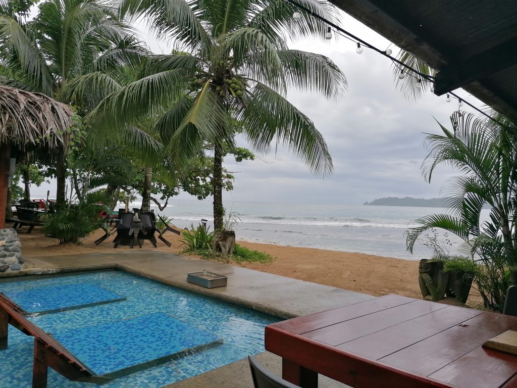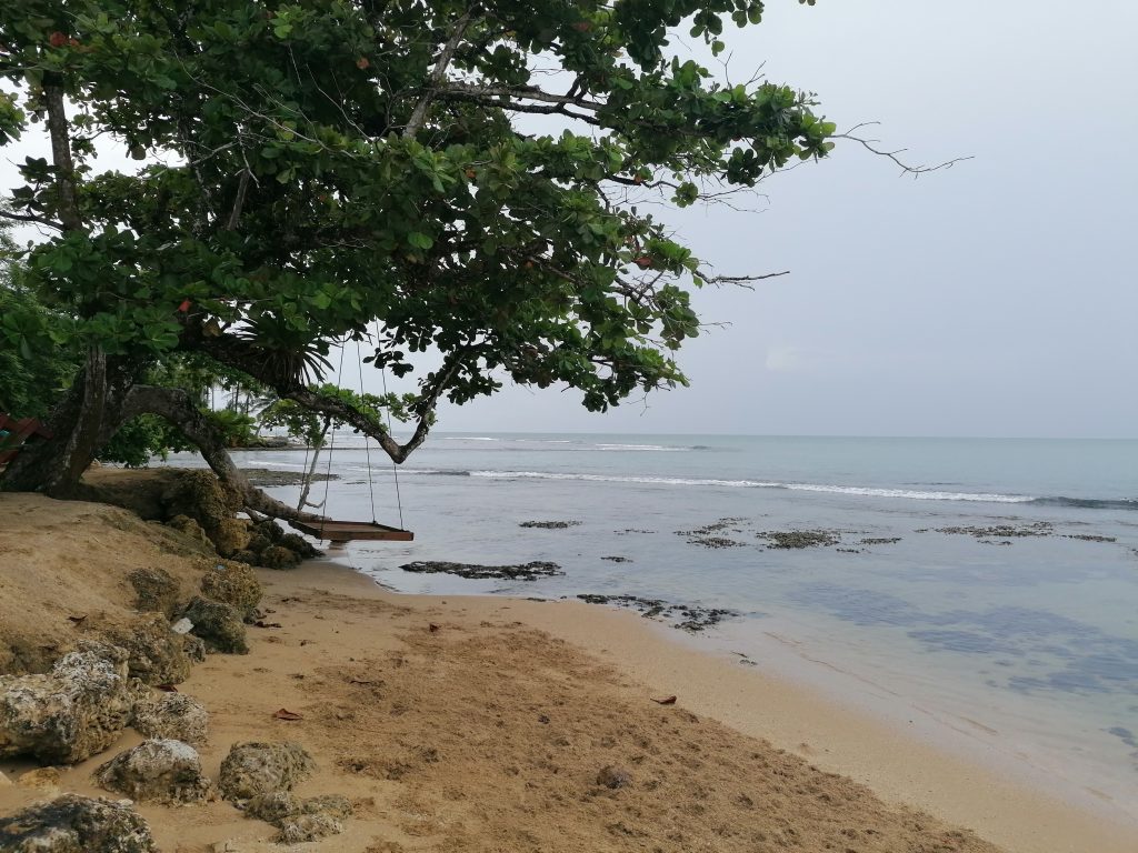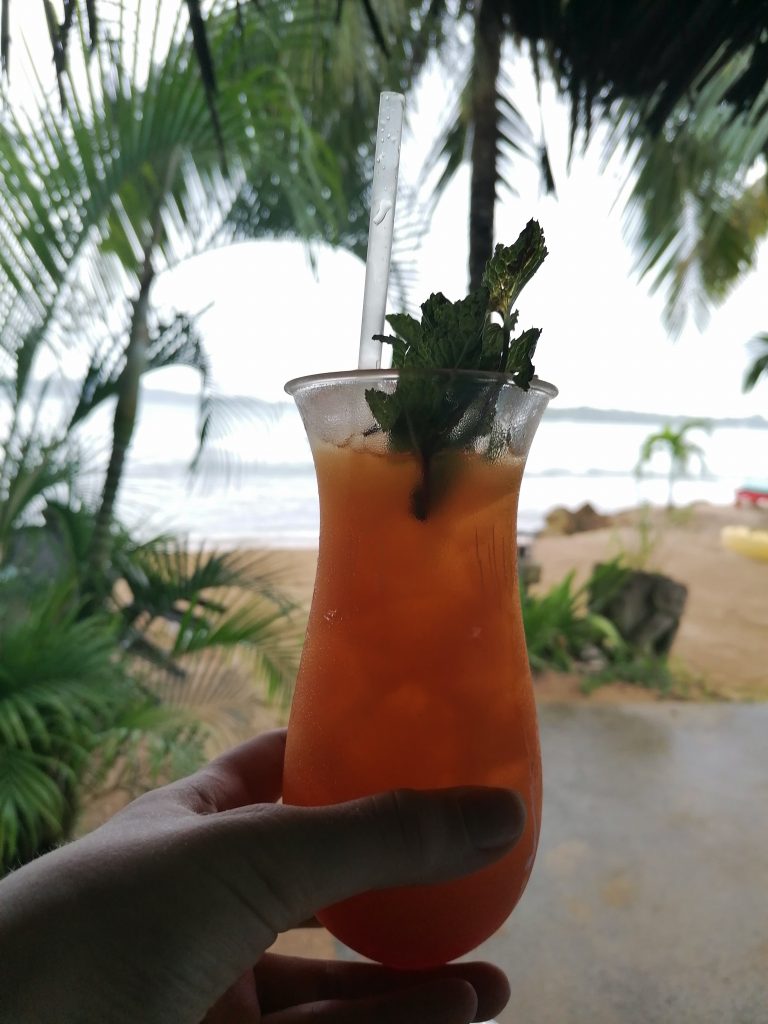 Erst am Nachmittag bewege ich mich aus dem Bett in den Hinterbereich des Hotels, wo die Wellen gegen den kleinen Strand rauschen. Es ist echt ein schöner Fleck, um einfach nur zu sein. Ich lese ein bisschen, schreibe ein bisschen… dann kommt der Barkeeper und gibt mir einen Gutschein für ein Freigetränk.