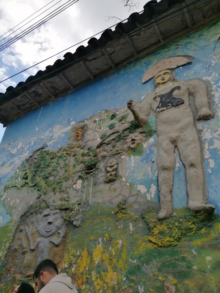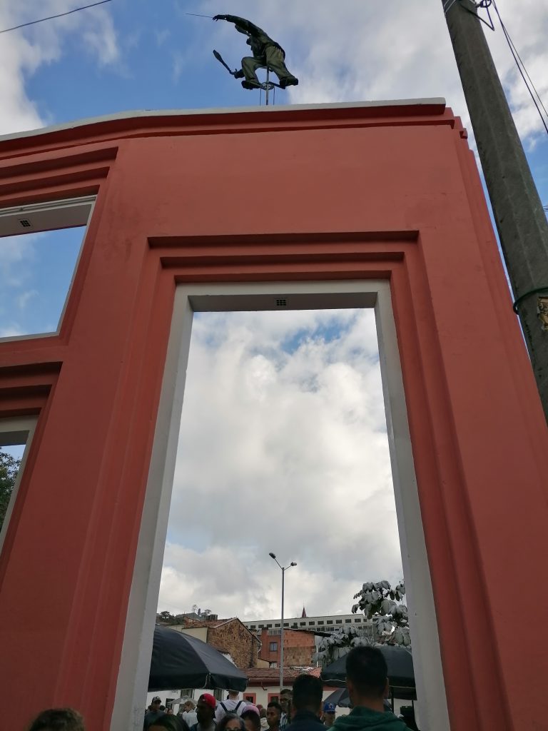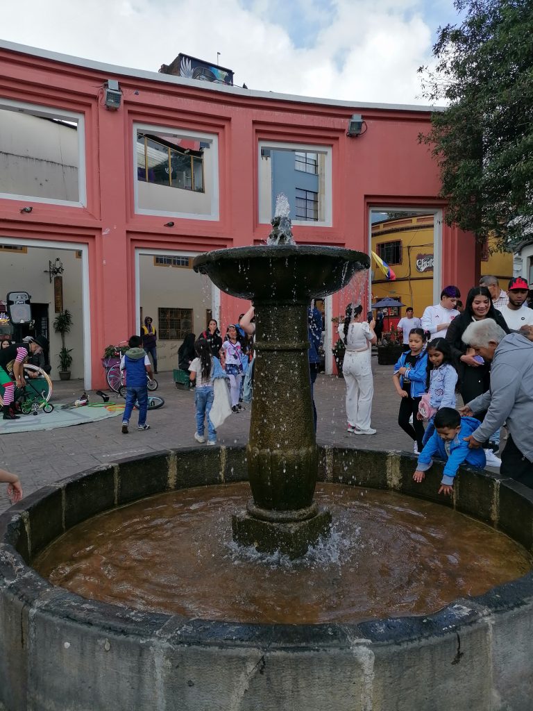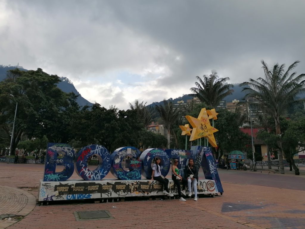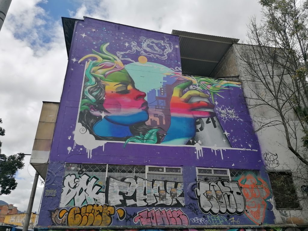 Wir laufen zum großen Markt, dort haben wir Zeit uns umzuschauen, uns einen Saft zu kaufen oder ähnliches. Ich hole mir kolumbianische Schokolade, jetzt kenne ich mich ja ein bisschen aus. Danach gehen wir in den Stadtteil „El Candelaria“, der einzige Stadtteil, wo man noch den kolonialen Stil findet, der die Unruhen 1948 überlebt hat. Außerdem ist das Bar- und Künstlerviertel der Stadt. Hier findet man einheimische Getränke, Zirkus, Stand-up-Comedy, Handwerkskunst, Musiker, Kulinarik und natürlich wieder ganz viel tolles Graffiti. Wir laufen die schmale, aber dicht bevölkerte Straße nach oben, die im 16. Jahrhundert gebaut wurde.