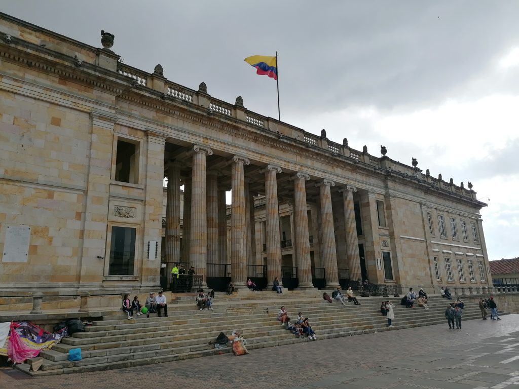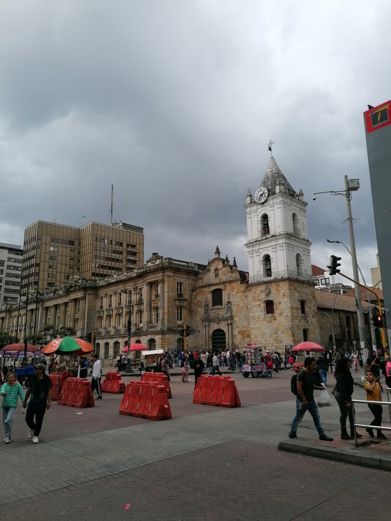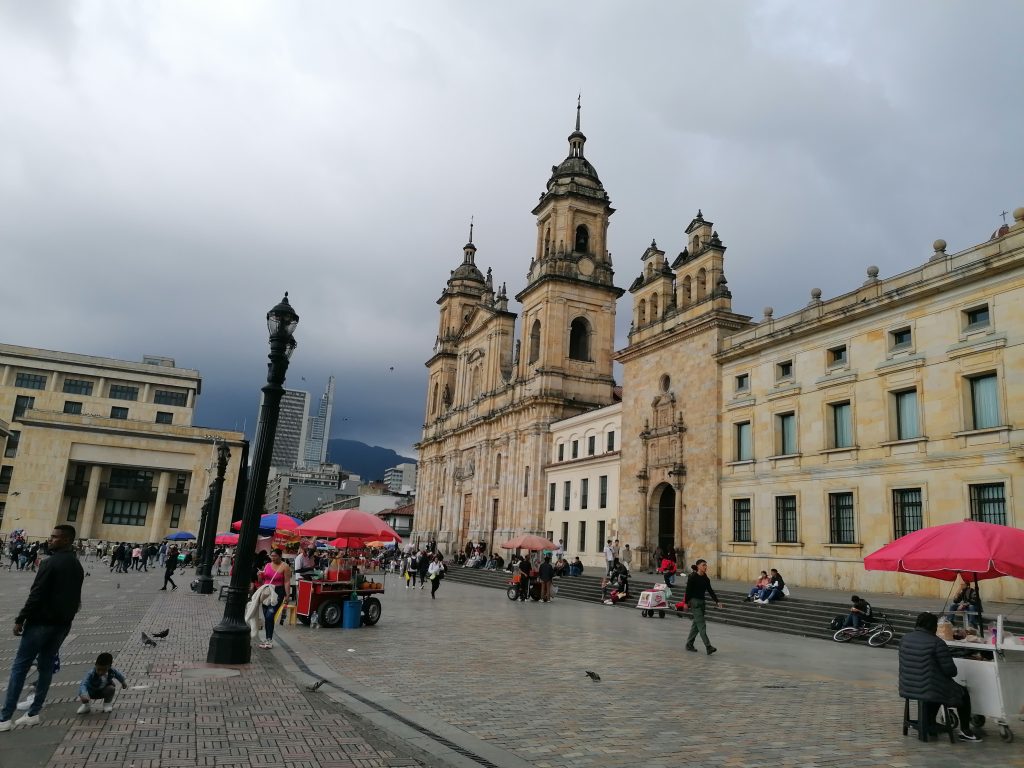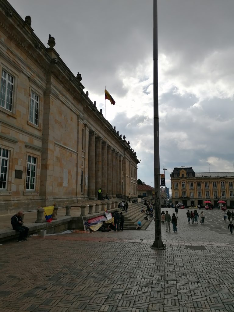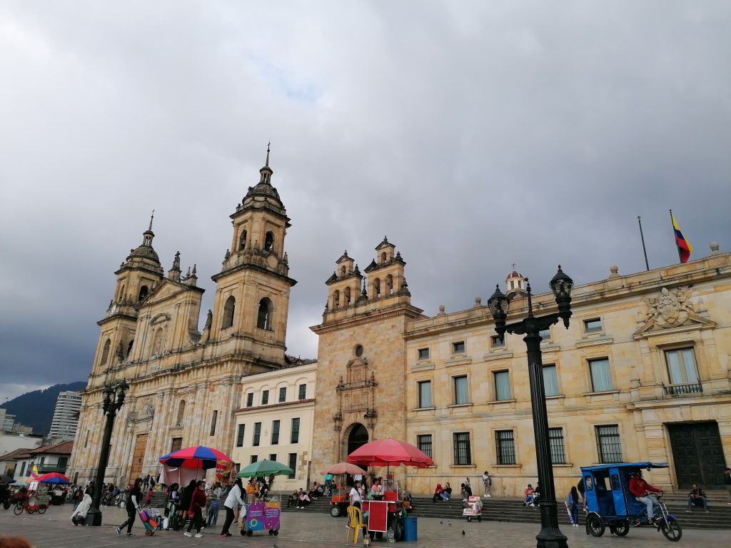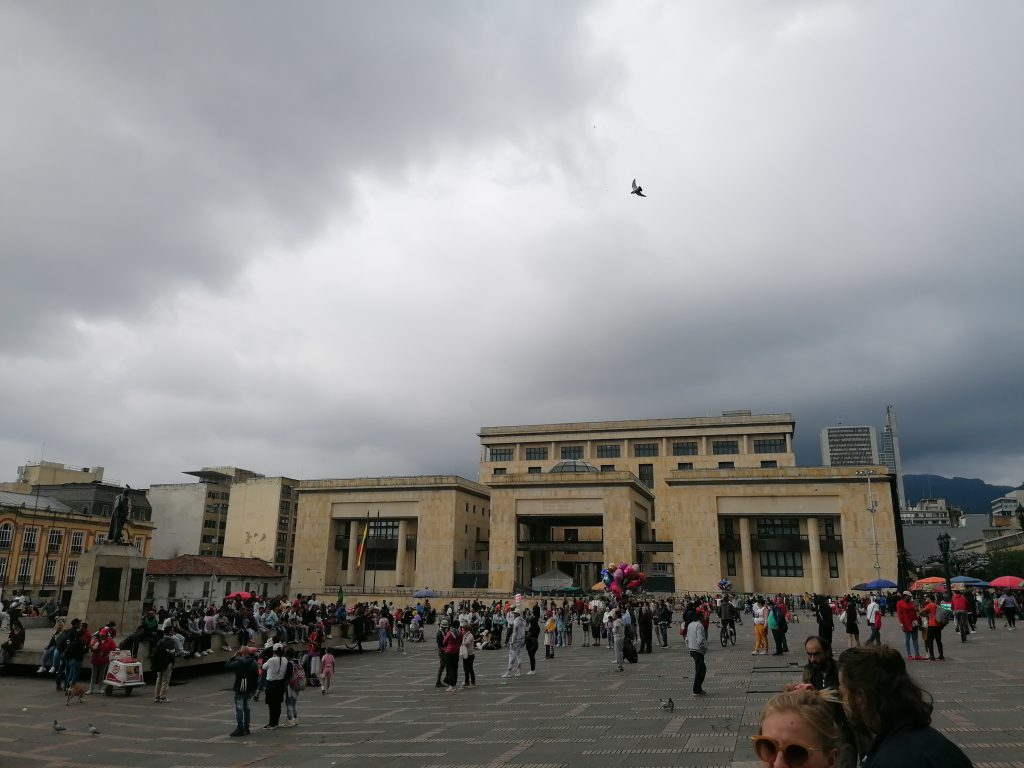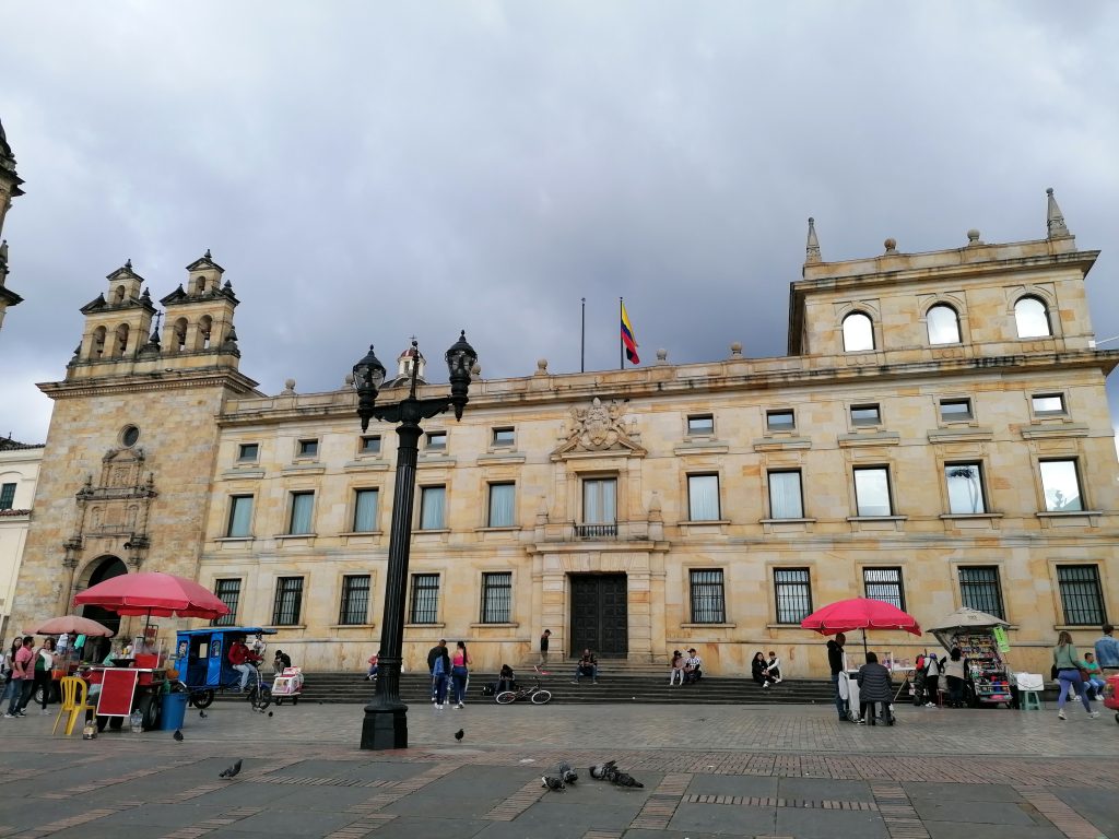 Am Plaza Bolivar sind die wichtigsten Regierungsgebäude: Der oberste Gerichtshof, die Stadthalle, der Präsidentenpalast und die Kirche… klar. Hier kommt es 1985 zu einem Terroranschlag, der die ganze Stadt in Angst und Schrecken versetzt. Die terroristische Organisation M-19 nimmt den Gerichtshof ein, sowie alle 11 Richter als Geisel. Der Präsident lässt sich nicht auf die Verhandlungen ein und ruft die Nationalgarde mit Panzern auf den Platz. Das komplette Gebäude wird zerstört und es gibt zahlreiche Tote, unter denen auch die 11 Richter. Deshalb ist das Gebäude heute komplett neu.