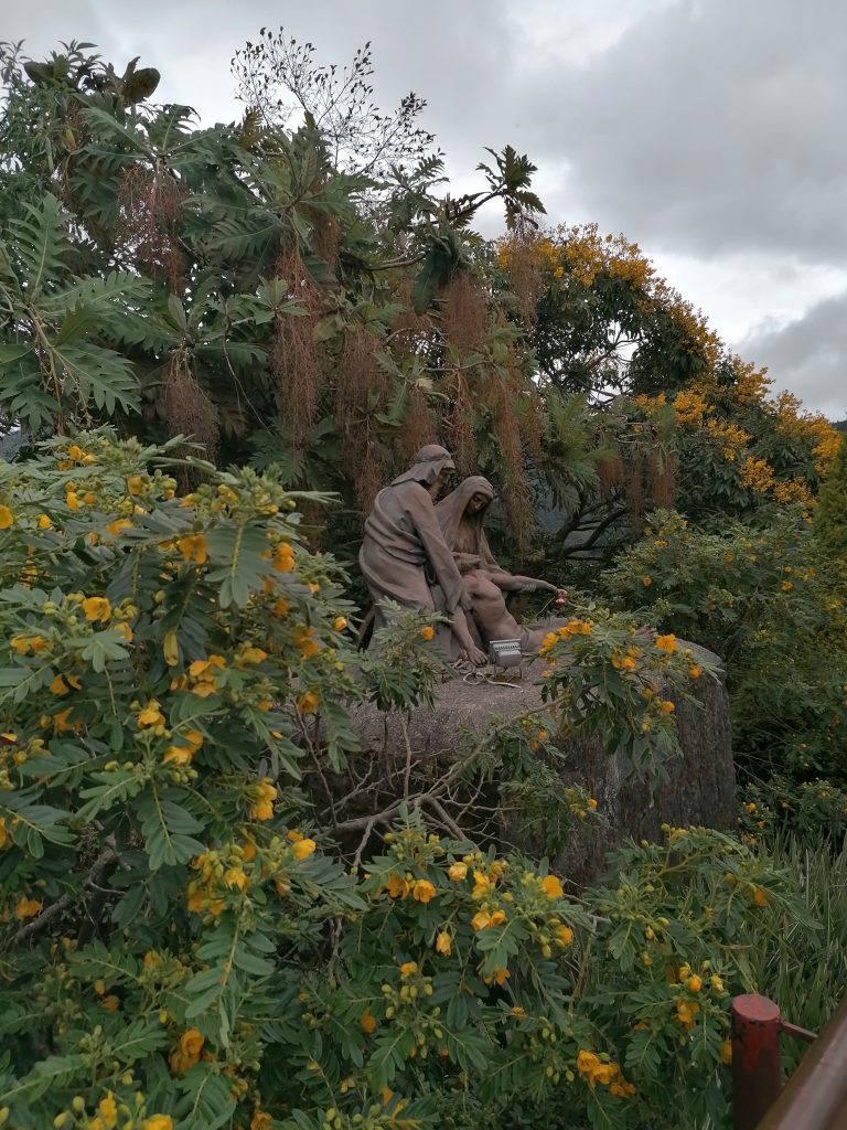 Auf dem nächsten Berg ist mal wieder eine Christusstatue, die ich mir spare. Bald darauf verdeckt die Wolke die Sicht vollständig und es geht auch auf die letzte Bahn zu, also stelle ich mich in die Schlange, um wieder nach unten zu fahren. Dann laufe ich zurück in die Altstadt, esse noch etwas und fahre dann zurück ins Hostel. Dort schreibe ich noch ein bisschen, um mir die Zeit bis zur Abfahrt meines Buses zu vertreiben, fahre dann ins Terminal und verlasse Bogota auf dem Weg nach Südwesten.