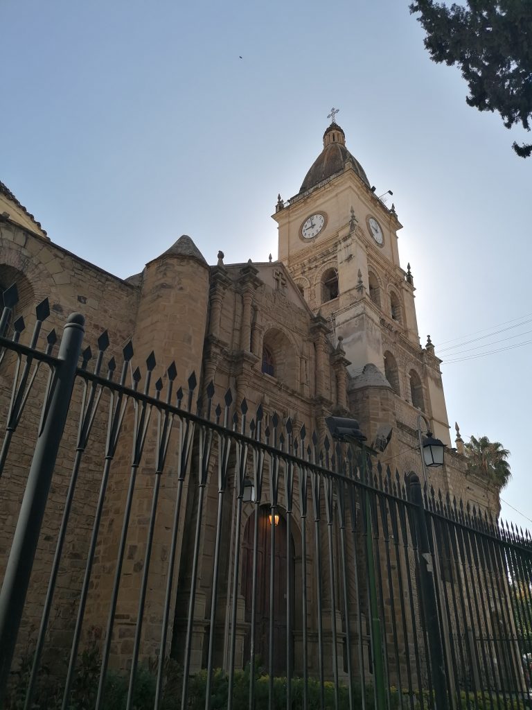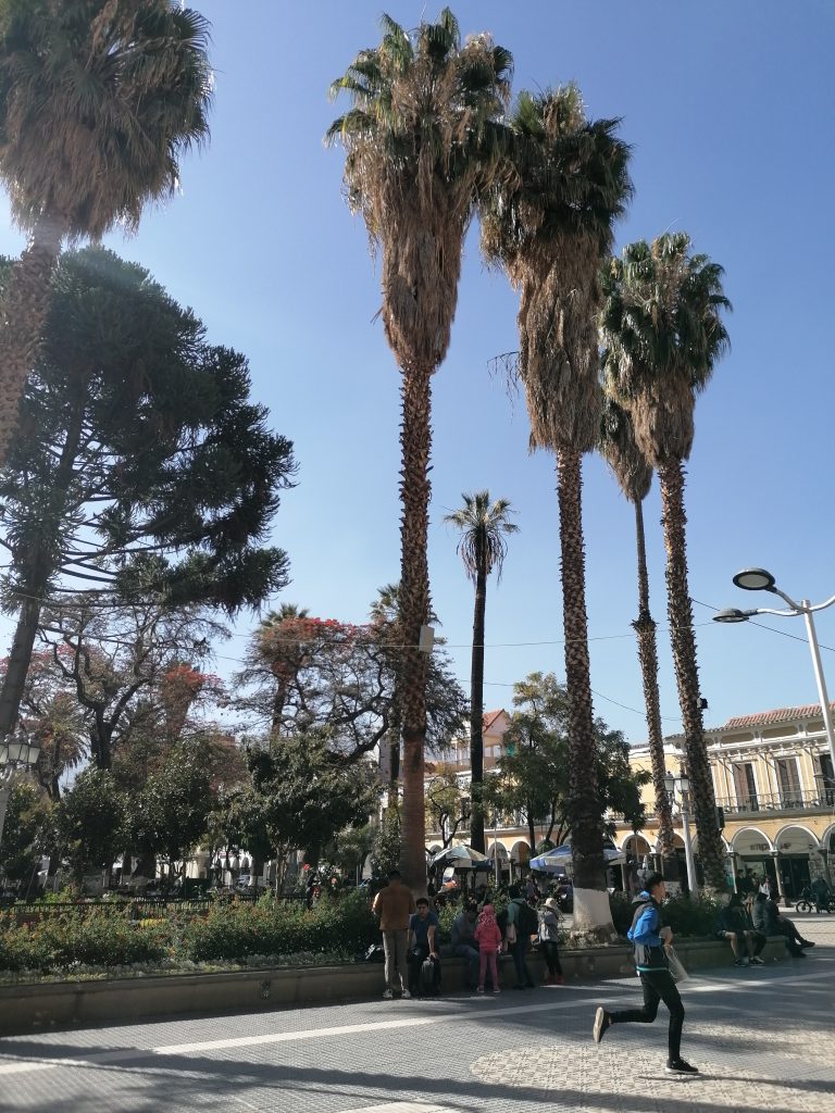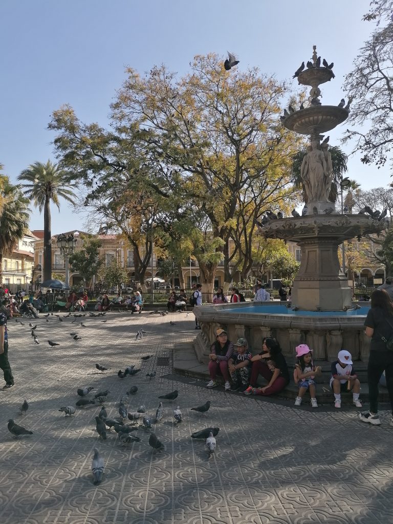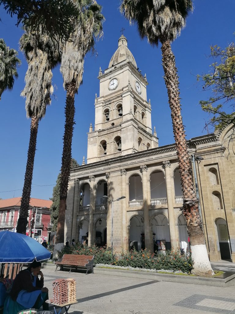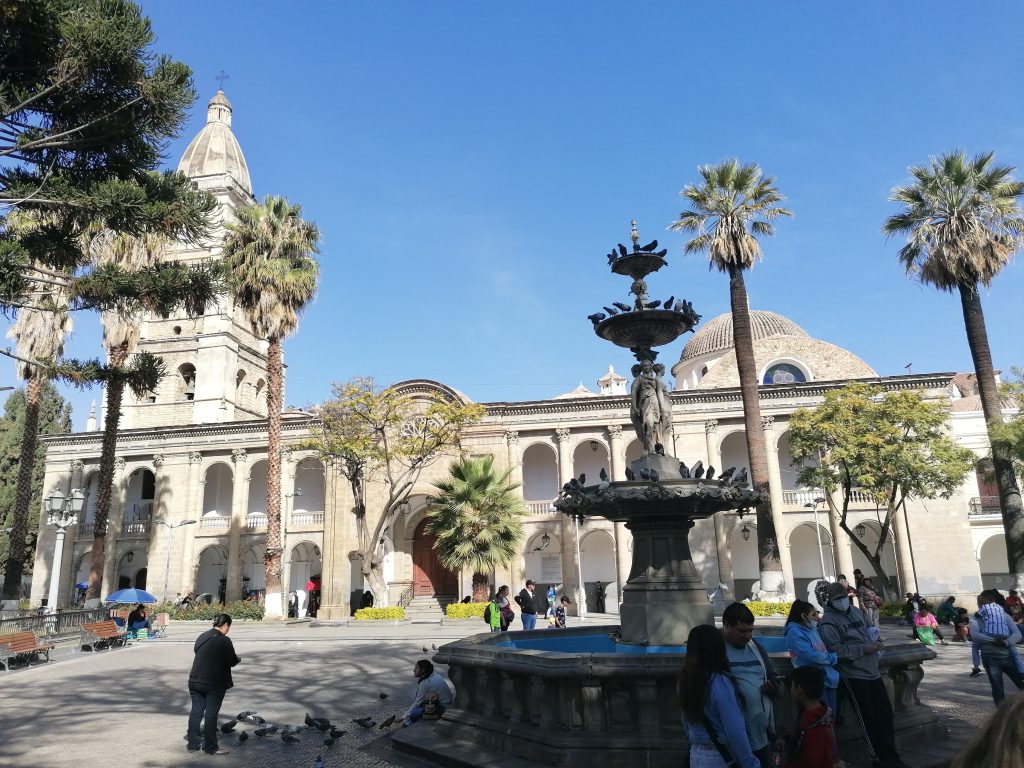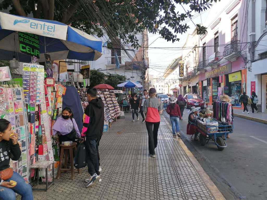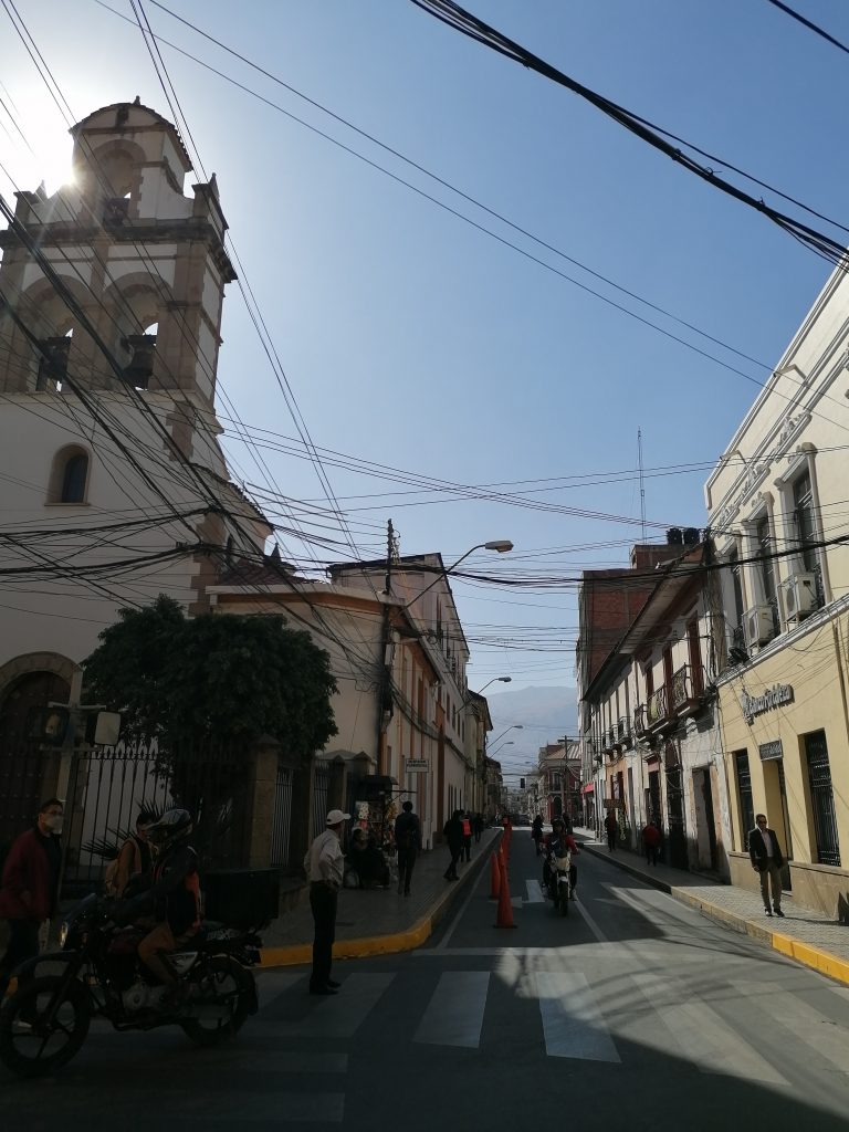 Am nächsten Tag gehen wir schon früh zum Terminal und freuen uns nicht, als die Pissstraße schon in vollem Betrieb ist. Jetzt stinkt es noch mehr. Wir kämpfen uns durch, das Terminal ist eine Markthalle. Jede Firma hat ihren Marktschreier, alle rufen so laut sie können die Ziele, die sie anfahren. Wir schauen uns ein bisschen um, lassen uns verschiedene Angebote für La Paz machen. Eine Frau meint, am besten kauft man das Ticket direkt vor der Fahrt, da ist es am günstigsten. Puh, das gefällt uns gar nicht, was wenn es dann keine Tickets mehr gibt? Aber sie hat schon recht, nach La Paz fährt gefühlt alle halbe Stunde ein Bus. Und als wir bei einer Firma ein Ticket kaufen wollen, verkaufen sie es uns gar nicht, der Bus fährt ja heute noch nicht. Okay, also auch das für die Katz. Wir laufen die Pisstraße zurück zum Hostel, suchen dort unsere Sachen und machen einen Stadttag. Wir lassen uns Zeit am großen Plaza und treiben ein bisschen durch die Straßen, bis wir Hunger bekommen.