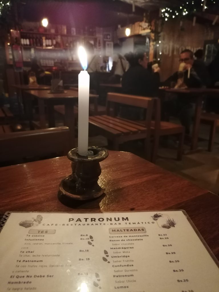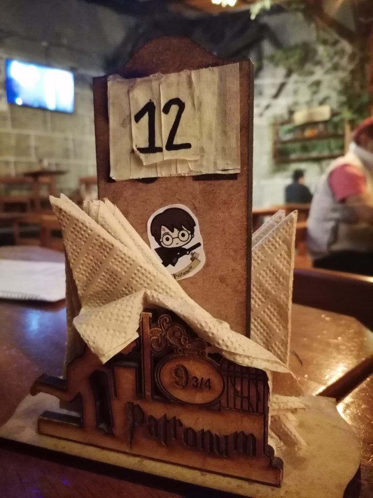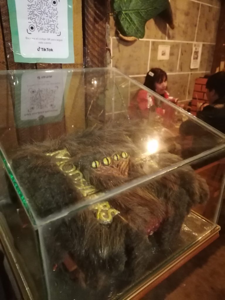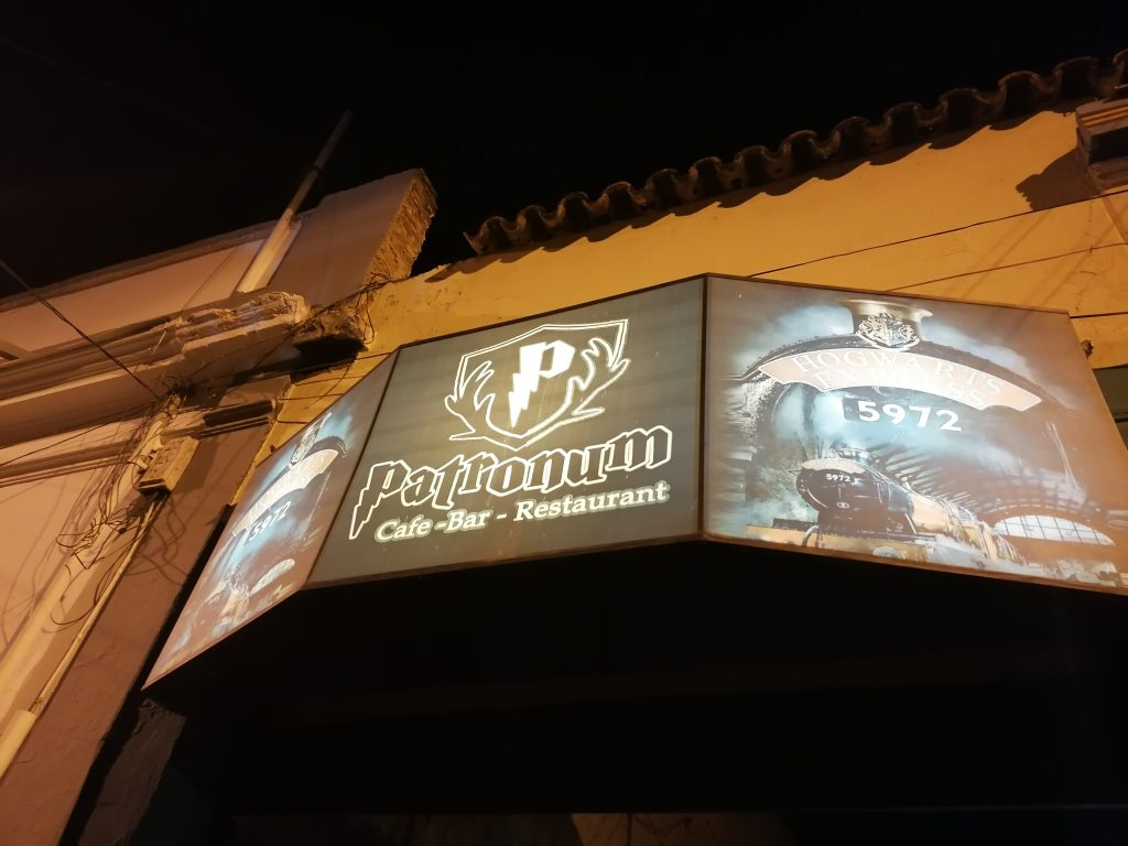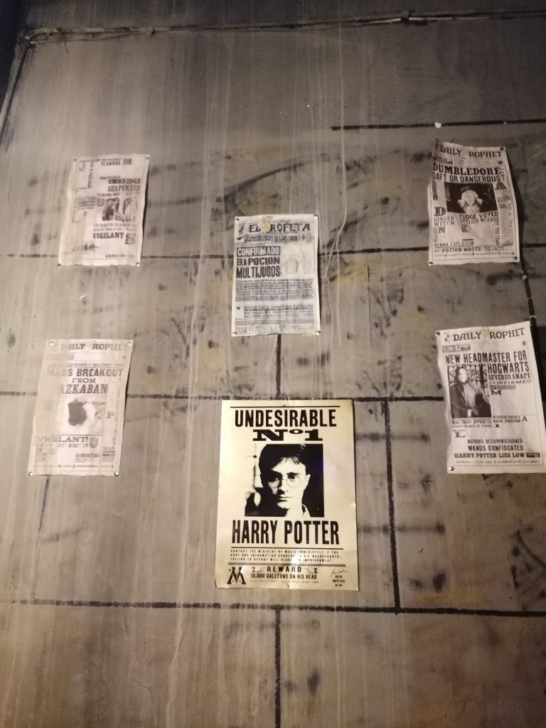 Zurück im Hostel suchen wir uns ein Restaurant zum Essen und gleich hinter uns ist eine Sensation: Ein Harry-Potter-Restaurant! Ich zwinge Ale fast dazu, dorthin zu gehen. Sie sagt zu, wir gehen rein und ich bin begeistert. Hinten rechts oben sitzt Hagrids Riesenspinne, an der Wand hängen Plakate mit „Undesirable No. 1“ und die Gerichte haben Anspielungen auf die Fantasy-Reihe.