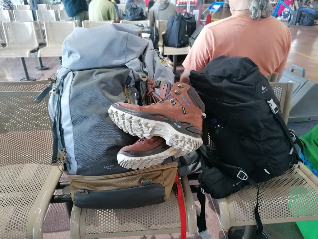 Durch Zufall entdecke ich, dass genau eine Reisegesellschaft sich auf Reisen nach Urugay spezialisiert hat. Ich gehe hin und in null Komma nix habe ich wieder ein bisschen mehr Plan und vor allem mehr Ticket! Eine Sorge weniger. Ich laufe fast die ganze Wartezeit auf und ab, um meine Füße sanft in Bewegung zu halten. Die geschwollenen Knöchel sehen komisch aus… hoffentlich wird das bald wieder. Später lese ich, dass Thrombose auch während Busfahrten ein ganz schönes Problem sein können. Daran habe ich überhaupt nicht gedacht, aber natürlich bin ich mit den Krampfadern auch vorbelastet. Ich suche nach Übungen, Methoden, damit das in Zukunft nicht mehr passiert. Gymnastik vor der Fahrt und viel Füße wippen. Klappt auch 😉