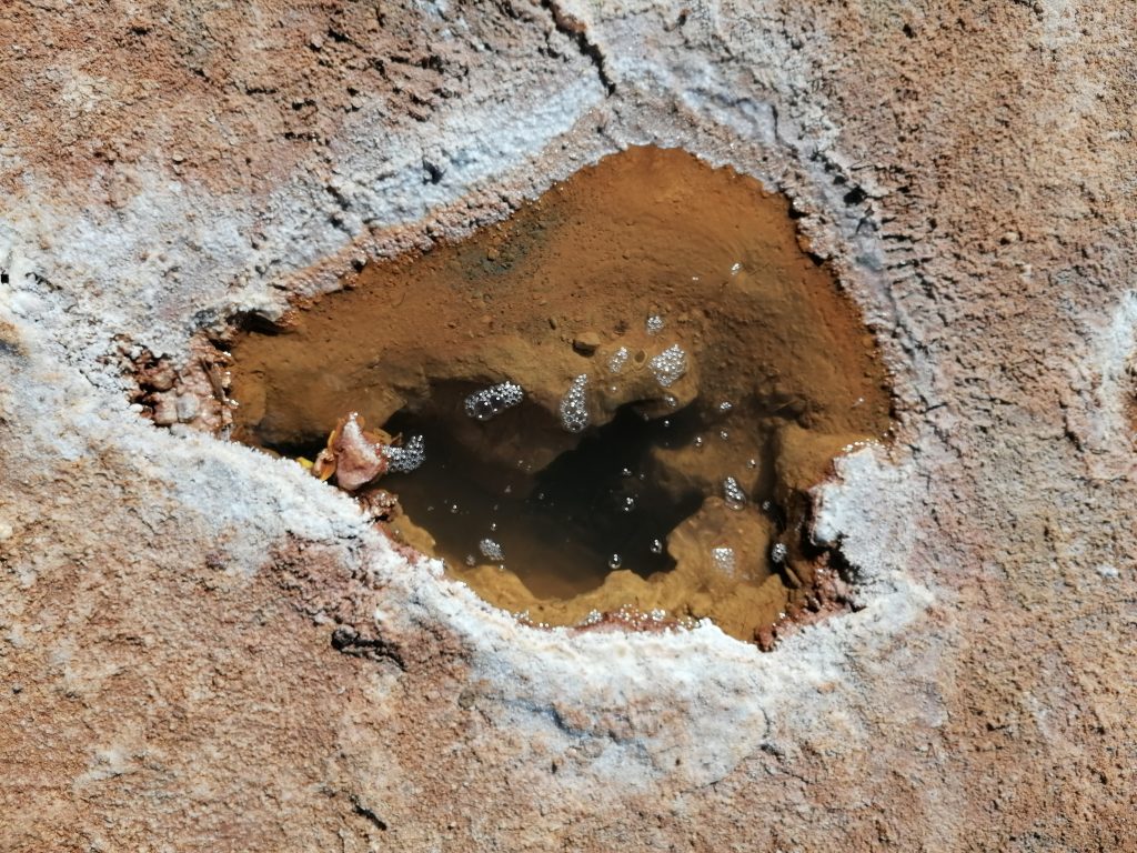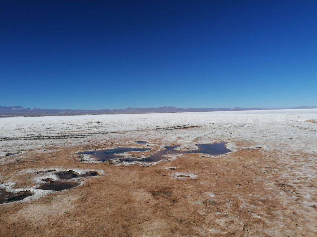 Bis zum Horizont und weiter, alles weiß. Wir sind begeistert. Das Auto hält an, wir steigen aus. Noch sind wir noch nicht tief in der Wüste, aber hier gibt es ein paar Wasserquellen, die ganz interessant sind.