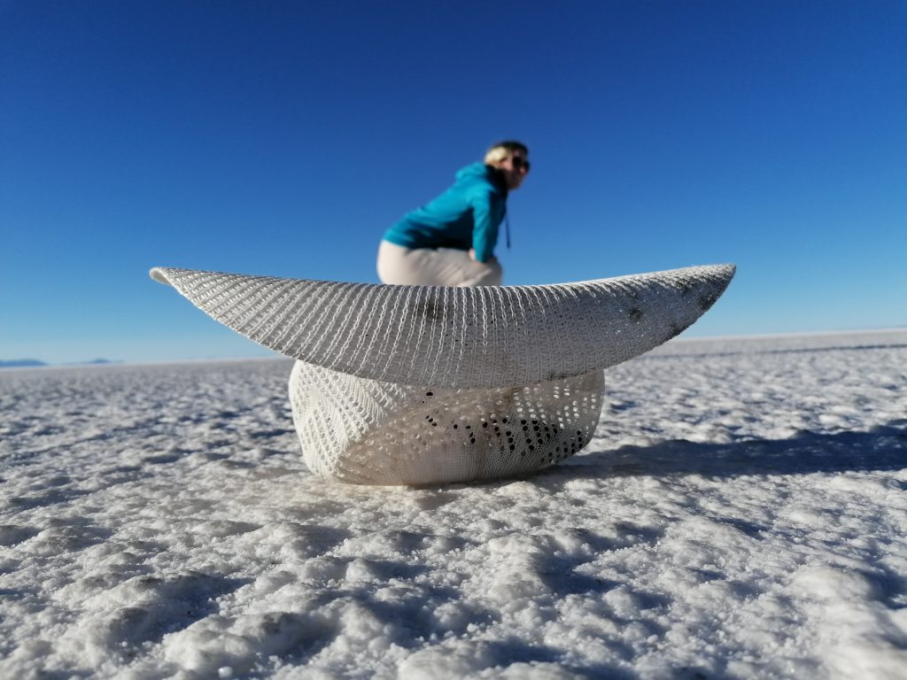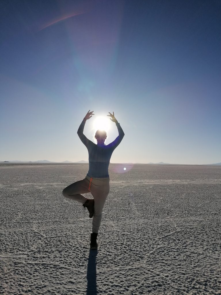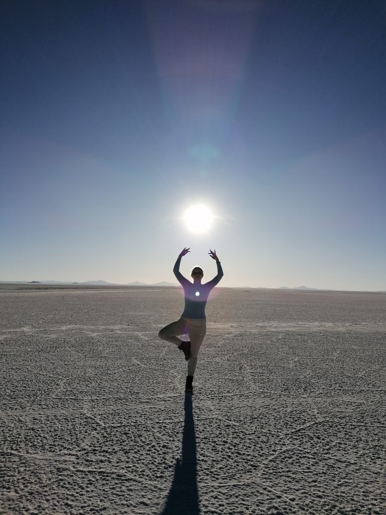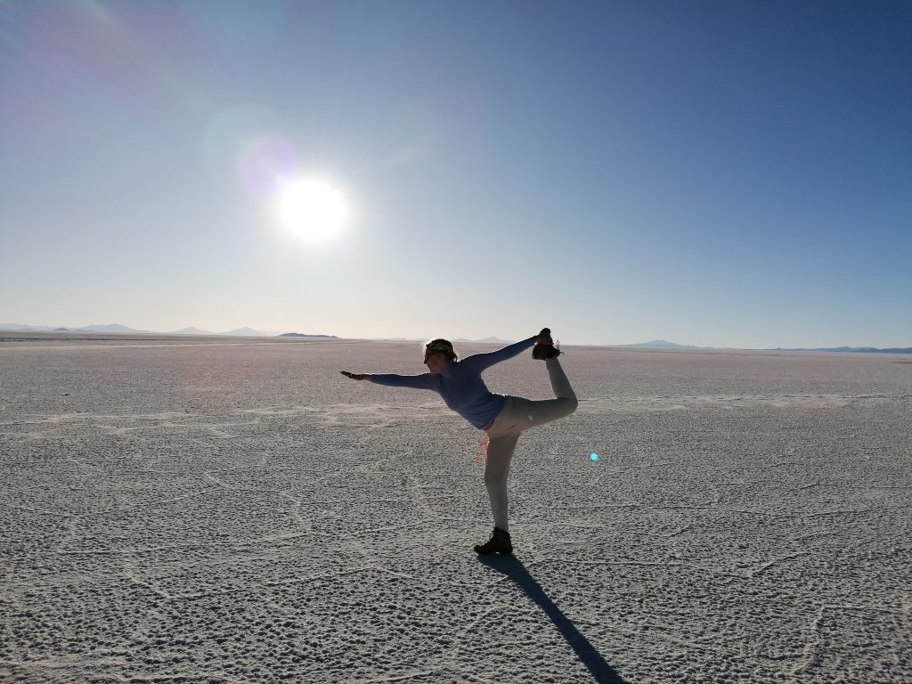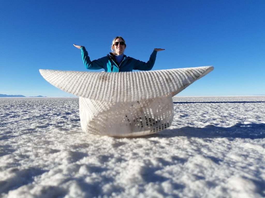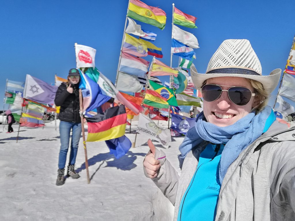 Dann fahren wir weiter raus in die Wüste, halten an, entfernt von anderen Jeeps, es wird Zeit für das, was alle hier wollen: lustige Salzwüsten Fotos.