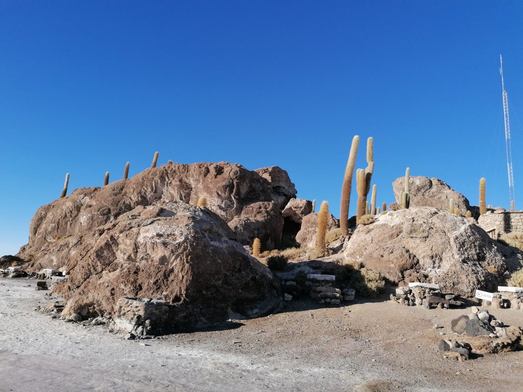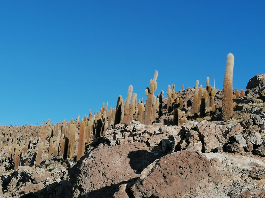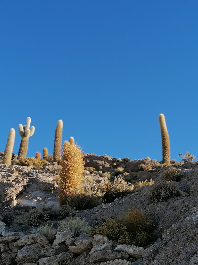 Danach fahren wir zu einer Kaktusinsel – Incahuasi – , die in der Salzwüste wie eine Oase liegt.