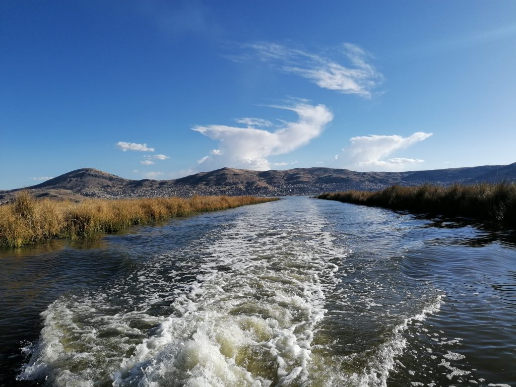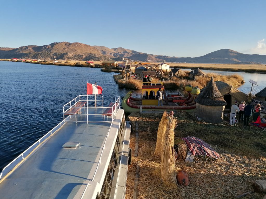 Für den Nachmittag buchen wir eine Tour zur Hauptattraktion der Stadt, neben dem Titicacasee selbst. Ein Taxi holt uns ab und bringt uns zum Hafen. Dort treffen wir noch zwei deutsche Jungs, mit denen wir ein bisschen plaudern. Dann geht es auf ein Schiff und hinaus auf den See.