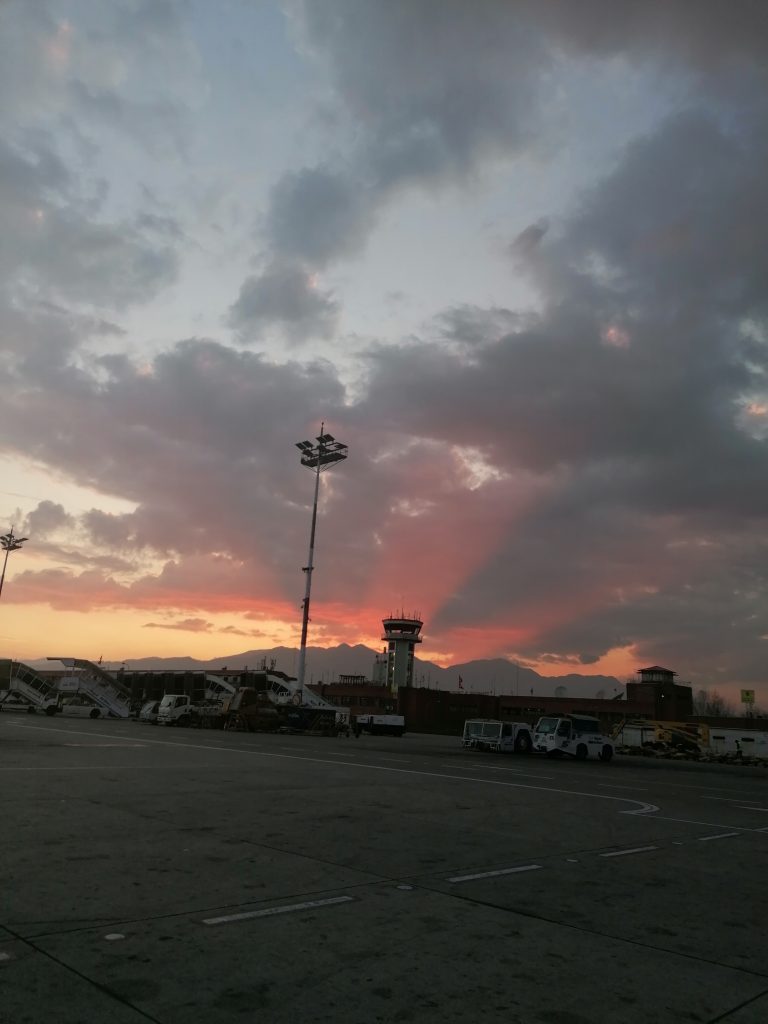 Wir landen in Nepal, gerade als die Sonne untergeht. Ich schaue zu dem rosaroten Himmel… aber das liebevolle Gefühl für Sonnenuntergänge, das ich sonst habe, ist diesmal nicht da. Sondern nur Unsicherheit und Angst vor dem was vor mir liegt.