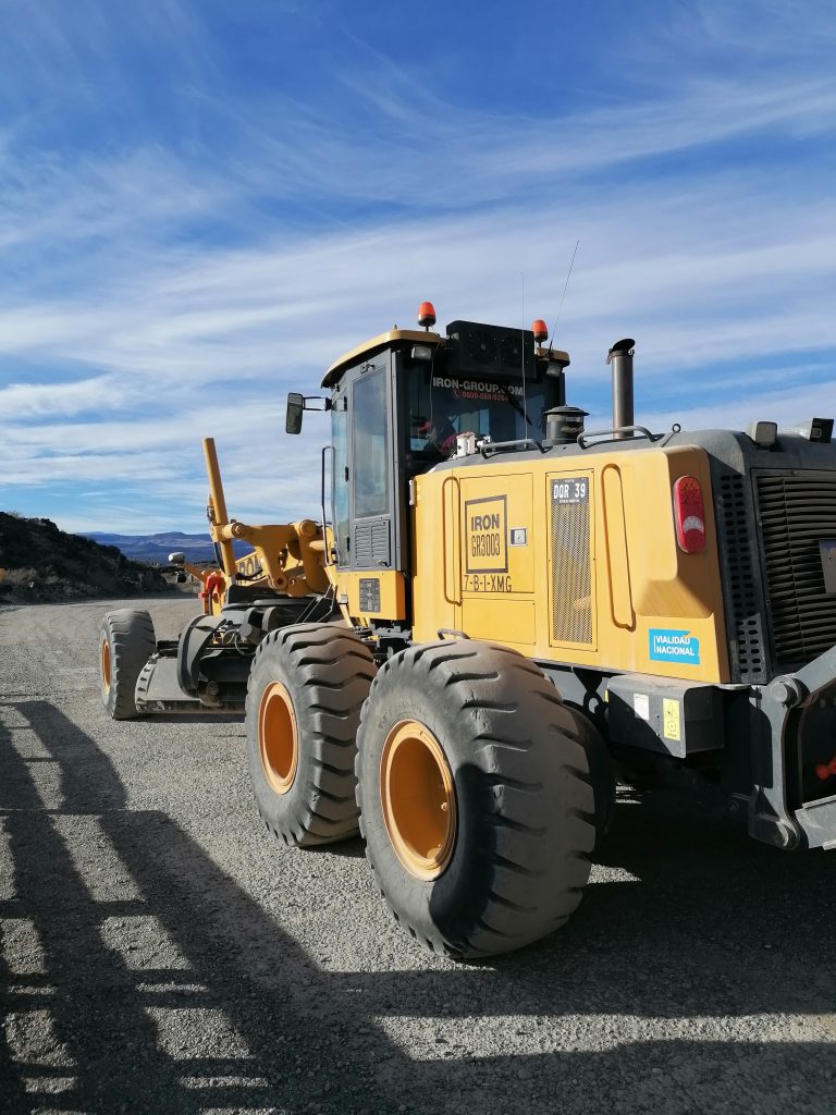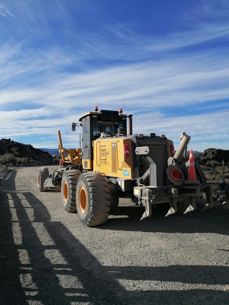 Während wir den Fluss anschauen, fährt eines von diesen Straßenplanierfahrzeugen vorbei, die die kleinen Wellen im Boden wieder plätten. Endlich kann ich mal ein Foto für meinen Neffen machen! Für dich, Mo, liebe Grüße und dicke Umarmung!!