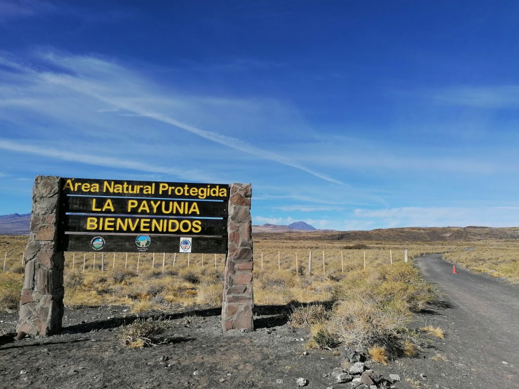 Der Parkranger erklärt uns, dass wir bitte nicht die Wege verlassen, unseren Müll mitnehmen und keine Tiere füttern. Alle gehen nochmal aufs Klo und los geht das Abenteuer: National Park Payunia.