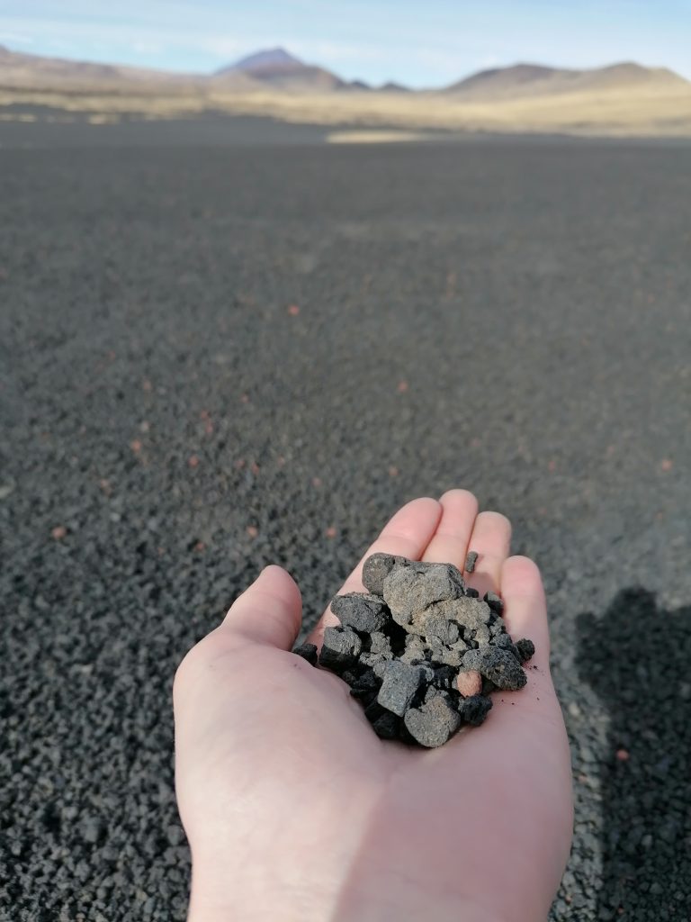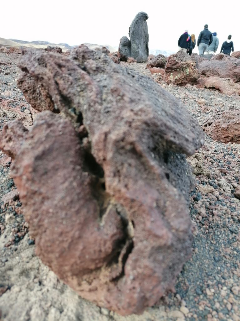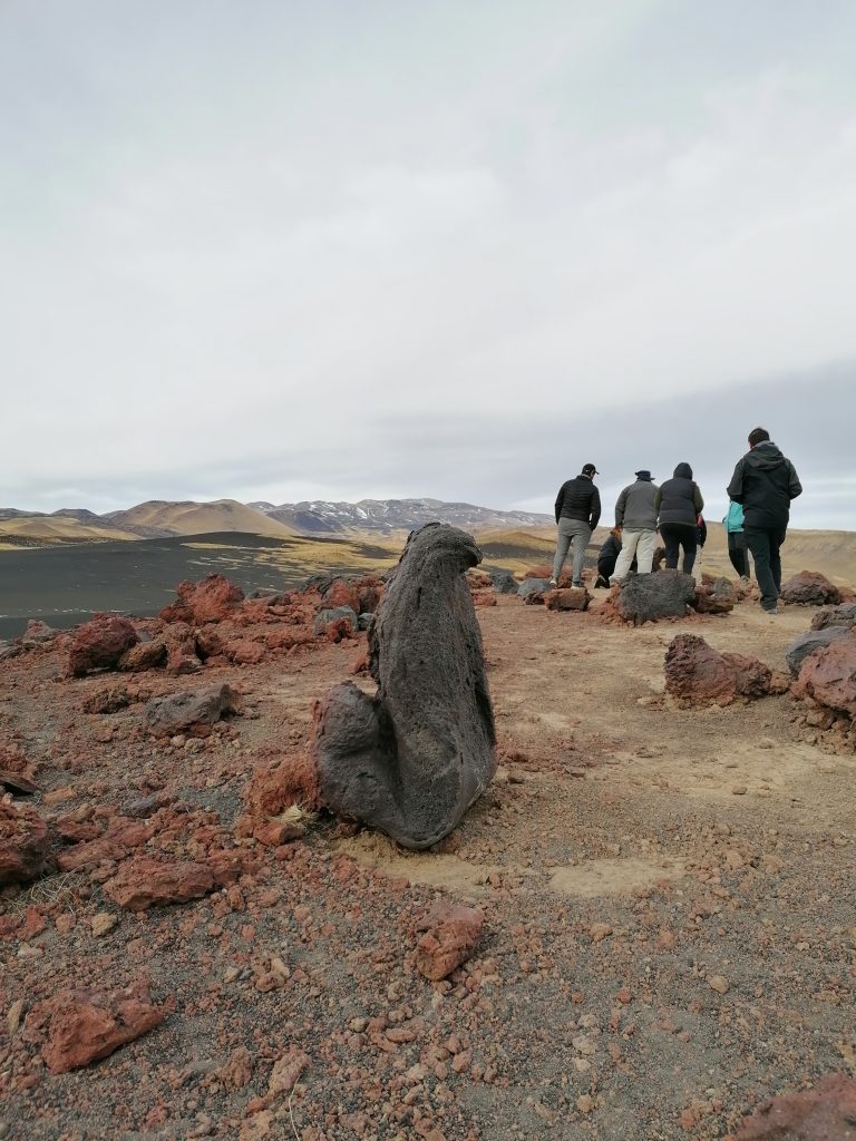 Dort gibt es auch Mittagessen: Sandwiches, aber jeder darf sich selbst sein Brot belegen und es gibt alles in Hülle und Fülle. So einfach, aber so lecker!!! Danach können wir noch kurz zwischen Vulkansteinen hin und her wandern, bevor es weiter geht. Wir halten noch kurz an zwei Fotostopps, einer davon heißt das „Museum“, wo es einige seltsam aussehende Steine zu sehen gibt. Manche sehen aus wie Tiere, andere einfach sehr abstrakt:
