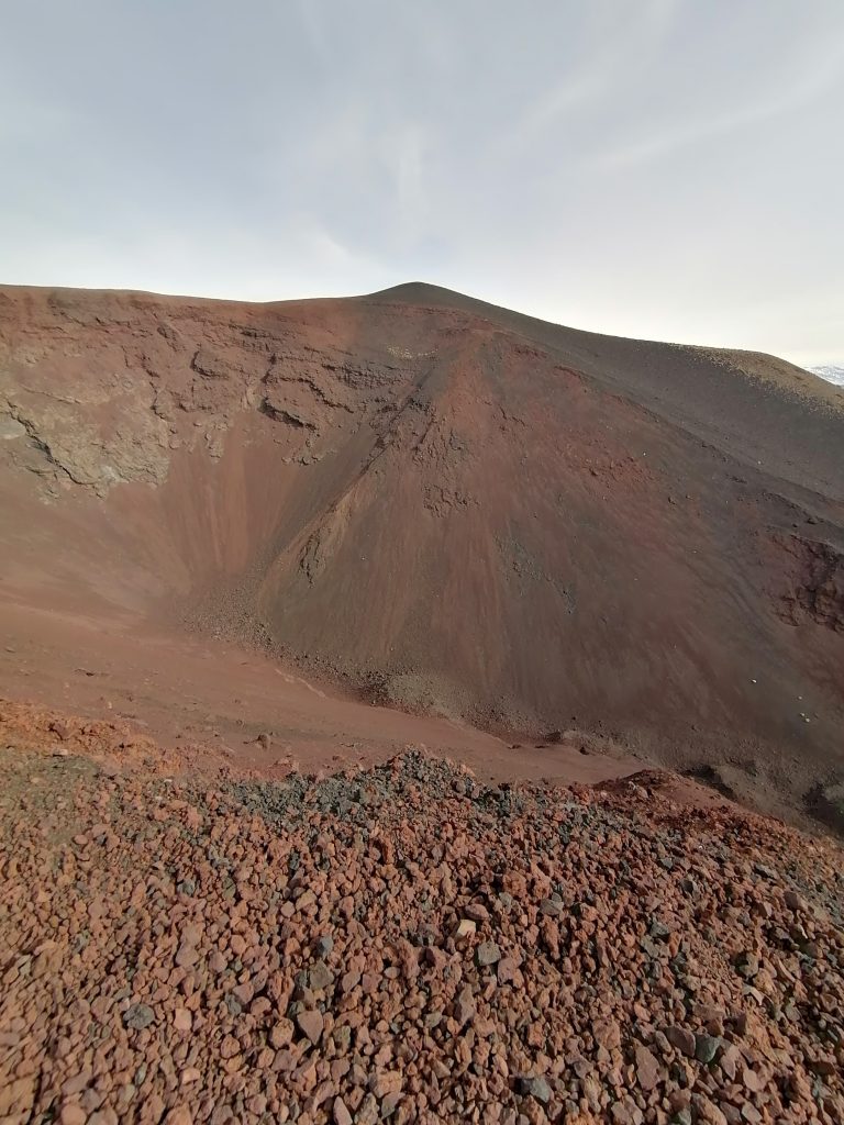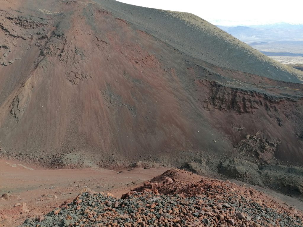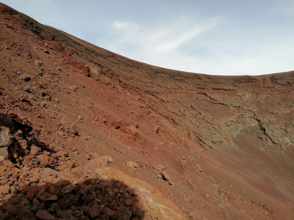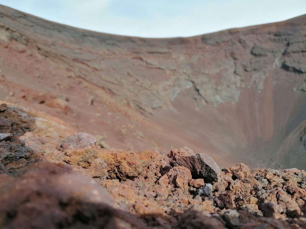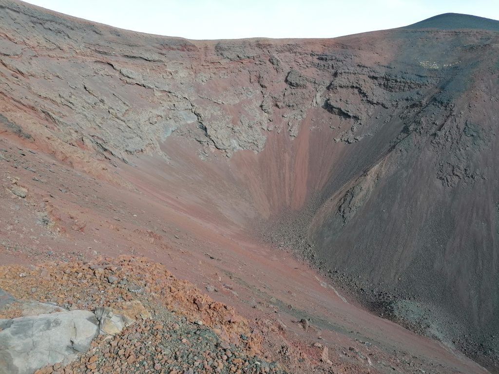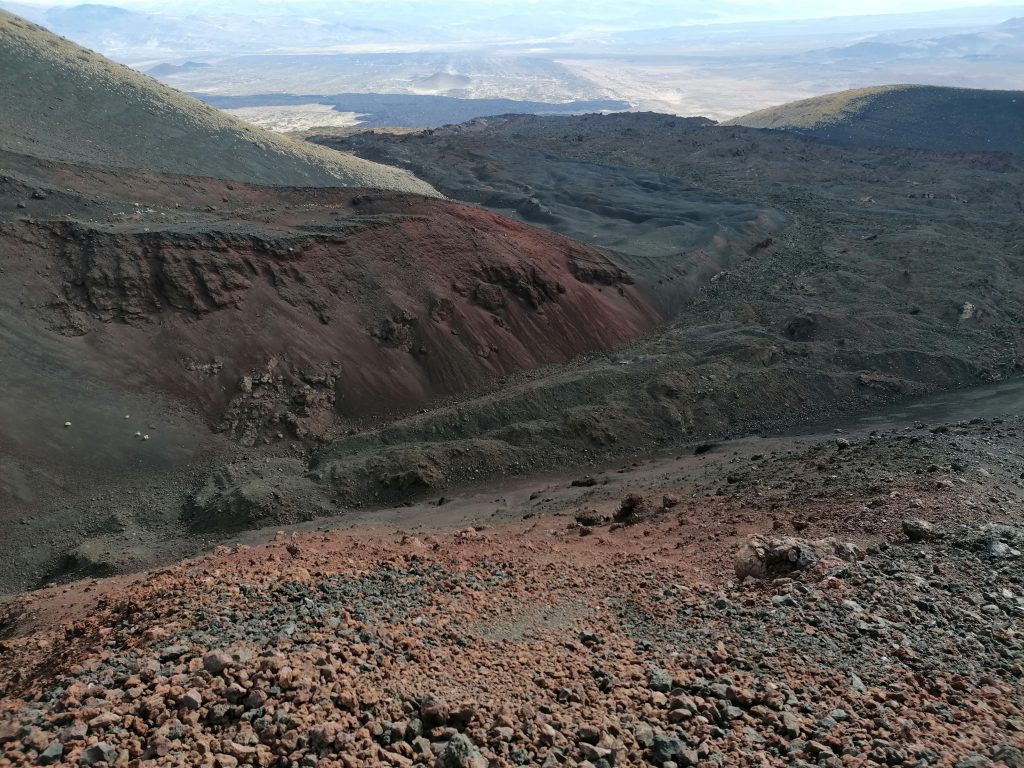 Dann stehen wir am Rand eines Kraters und blicken in die Tiefe: