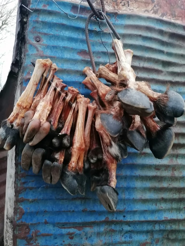 Später entdecke ich noch andere Körperteile, aber die sind mir zu eklig für’s Internet. Bei Interesse einfach melden. Tja, hier draußen herrscht eben Realität und keine perfekt verpackte Supermarktware. Ich frage noch, woher sie das Wasser haben… aus den Bergen natürlich. Schönes Leben… aber auch ein hartes Leben.