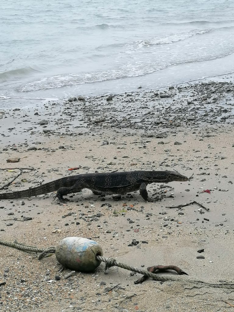 Ich suche mir den Weg durch die Straßen und komme dann auf einen Pfad, der wohl als Touristenpassage zu dem zweiten Strand angelegt wurde. Ab da muss ich nur noch der Masse folgen. Plötzlich sehe ich einen Touristenhalbkreis, der interessiert Fotos von einem… Ähm… Tier macht: