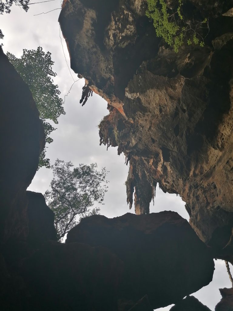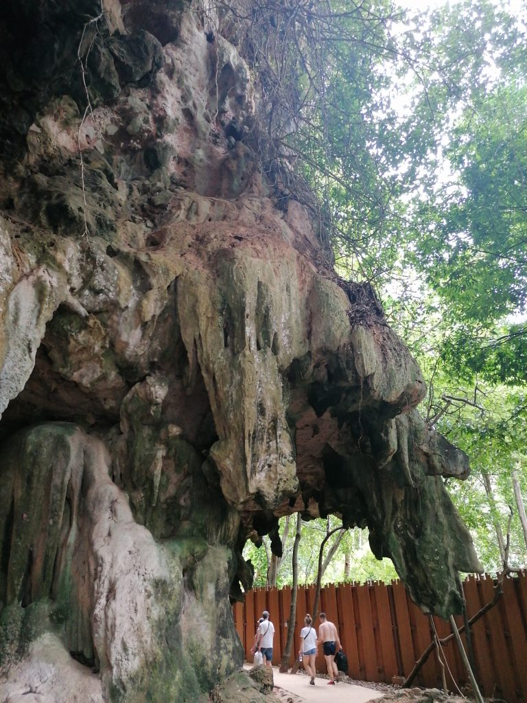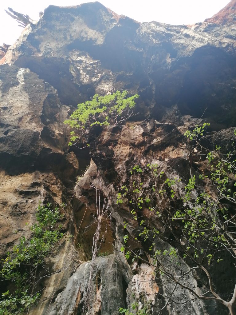 Der Pfad führt um das Dorf herum und dann an einem der riesigen Felswände vorbei… oder besser hindurch. Zwischenzeitlich wirkt es ein wenig, als wäre man in einer Tropfsteinhöhle, so hängen die Zapfen von den Wänden. Ziemlich beeindruckend.