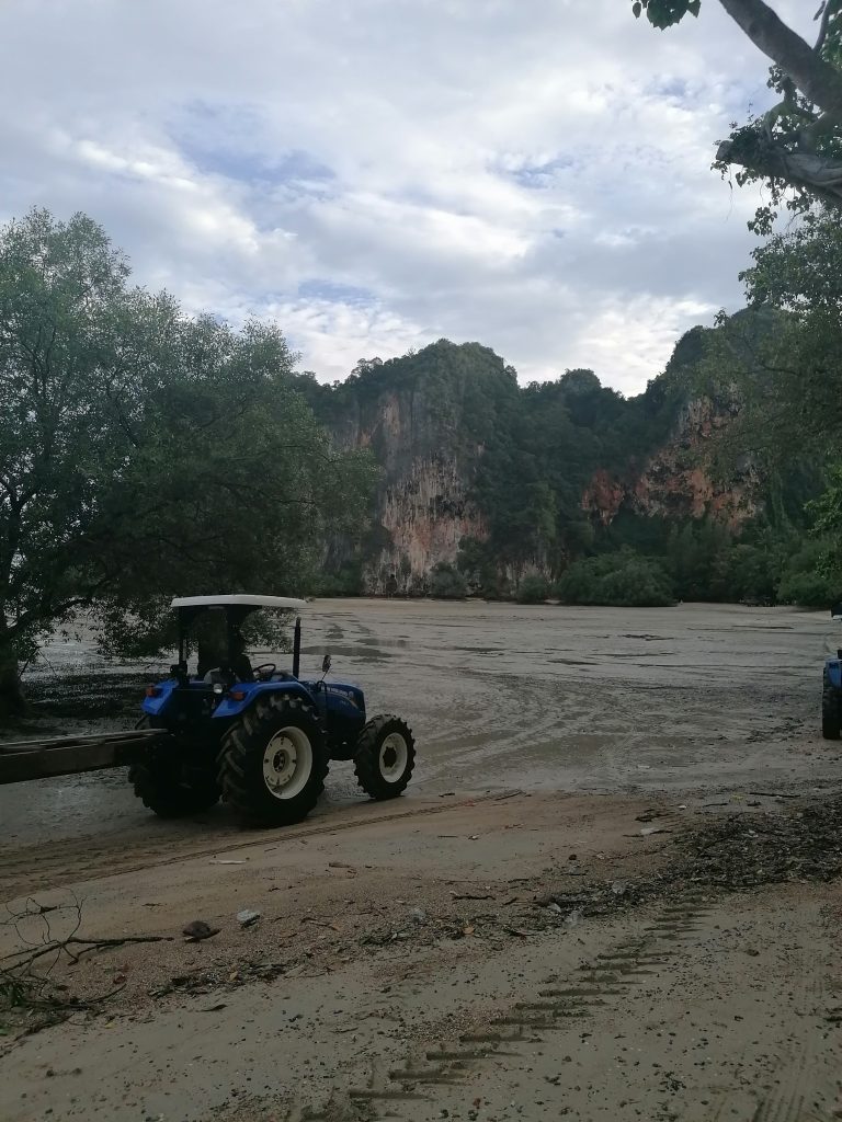 Nachdem ich also für ca. 5 Euro mir den Bauch mit herrlichem thailändischen Essen vollgeschlagen habe, beschließe ich mir die Mühe anzutun und mir ein Hin-und Rückfahrt Bootsticket zu kaufen und zu dem bekannten Railay (also offiziell eigentlich Rai Leh) Beach zu fahren. Wenn der so bekannt ist, dann wird der schon besonders toll sein.