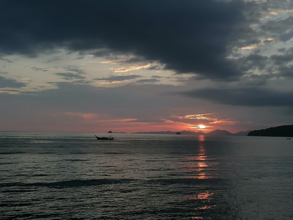 Am Rai Leh Beach hüpfe ich wieder in mein Boot und komme rechtzeitig zum Sonnenuntergang wieder in Pha Nang an.