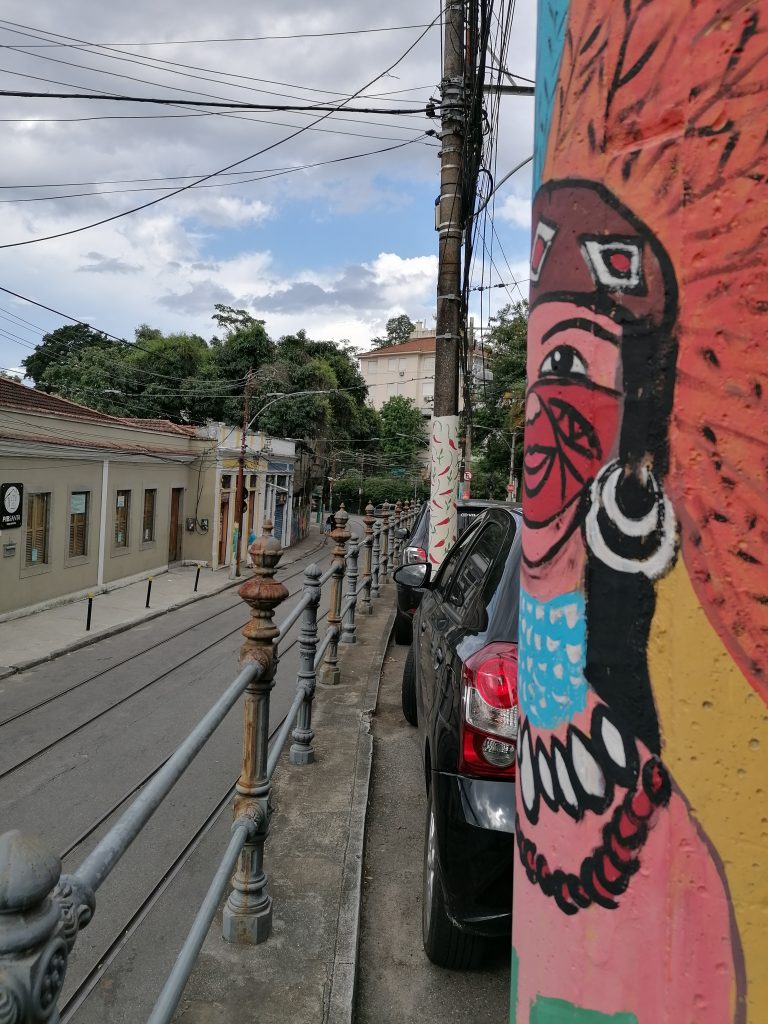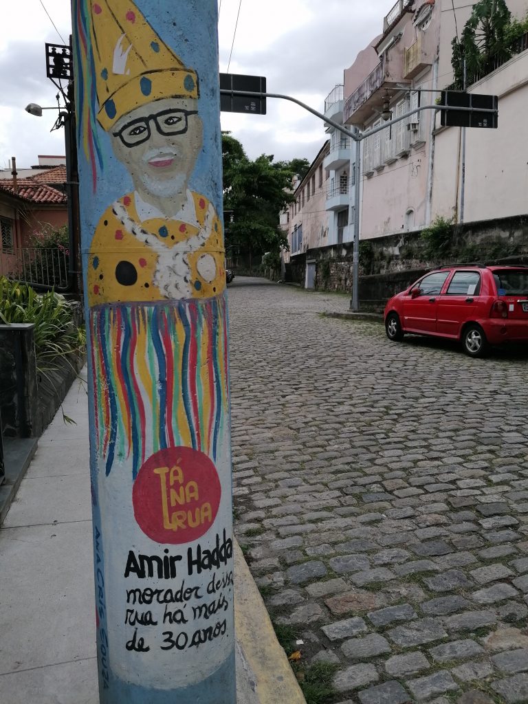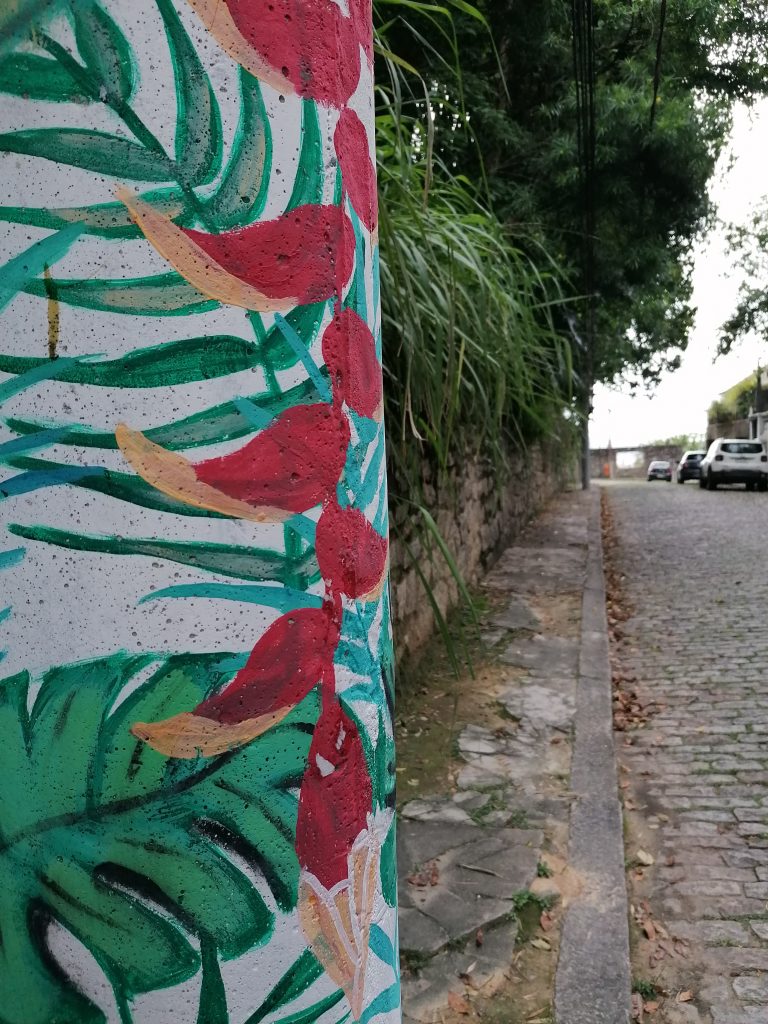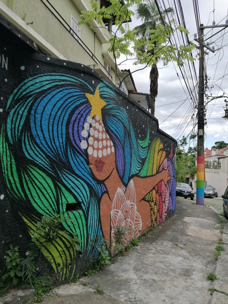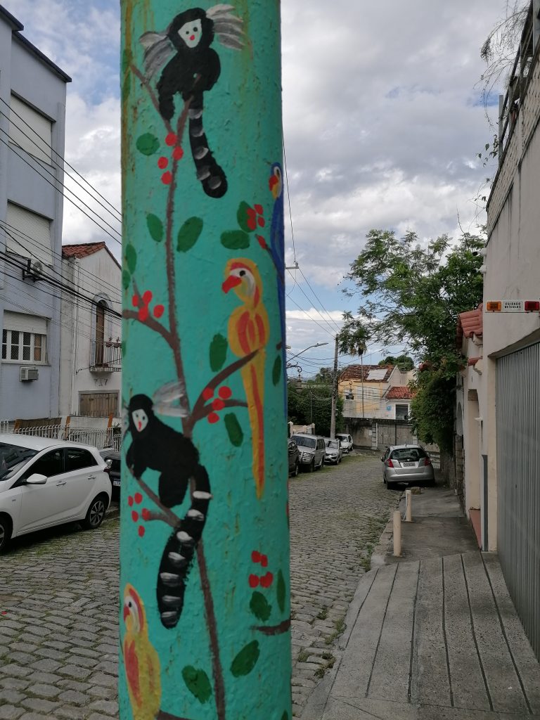 Santa Teresa kann man ein bisschen mit Montmatre in Paris vergleichen. Kleine Gassen, süße Häuser, bunte Farben und vor allem: Street Art. Das ist hier im Gegensatz zu Deutschland nämlich allgemein erlaubt und ich entdecke so einige Kunstwerke an den Wänden… und an den Straßenpfeilern: