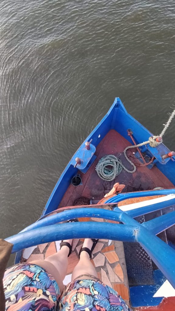 Es regnet, ich esse, es hört auf, dann packe ich es und gehe zur Fähre. Schade, dass ich schon wieder gehen muss… aber ein Zeitplan ist ein Zeitplan. Ich muss auf der Fahrt stehen, weil es so voll ist, ist aber okay. Aber ich bin genervt von den vielen (männlichen) Blicken, die mich mal wieder treffen. Ich steh nicht gern im Mittelpunkt, können die nicht woanders hinschauen?! Ich bin bei weitem nicht die erste Weiße, die hier entlangfährt.