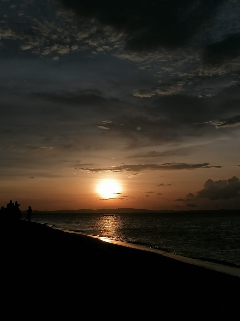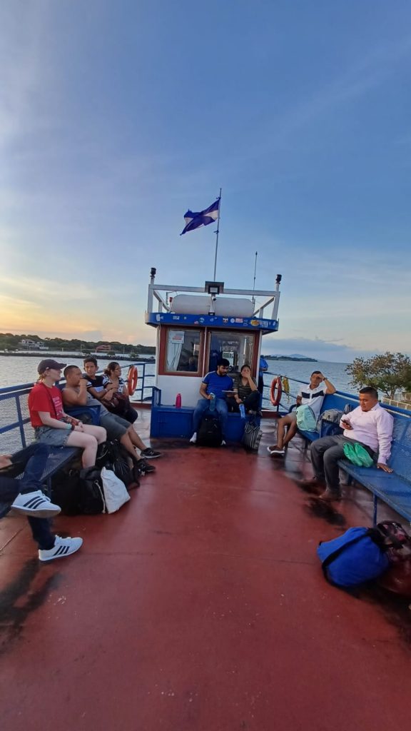 Dort haben wir noch 10 Minuten, um das Ticket zu kaufen… aber die Menschenschlange vor uns bewegt sich einfach nicht. Die 10 Minuten vergehen schnell, die Fähre ist weg, niemand von den 15 Leuten vor uns ist noch draufgekommen. Die nächste fährt erst eineinhalb Stunden später, aber anstatt uns zu sagen, dass der Ticketverkauf dafür später beginnt, lassen uns die Leute ewig in der brennenden Sonne warten, bis alle verärgert sind. Auch wir sind sauer, werden oft hin und her geschickt mit falschen Informationen, bis wir endlich auf der Fähre ankommen. Wenigstens der Sonnenuntergang ist ganz nett.