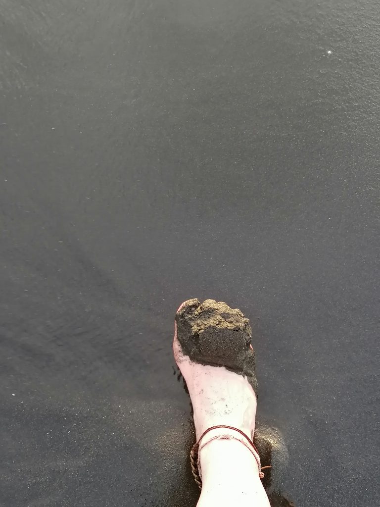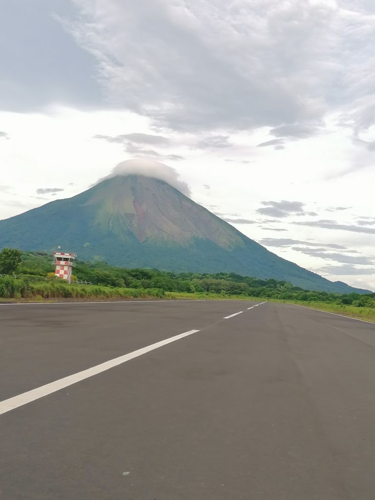 Wir laufen weiter und überqueren eine Flugzeuglandebahn, was ein tolles Fotomotiv bietet, vor allem wegen der Sicht auf den Vulkan. Wer wohl hierher fliegt? Der Präsident für Ferien?