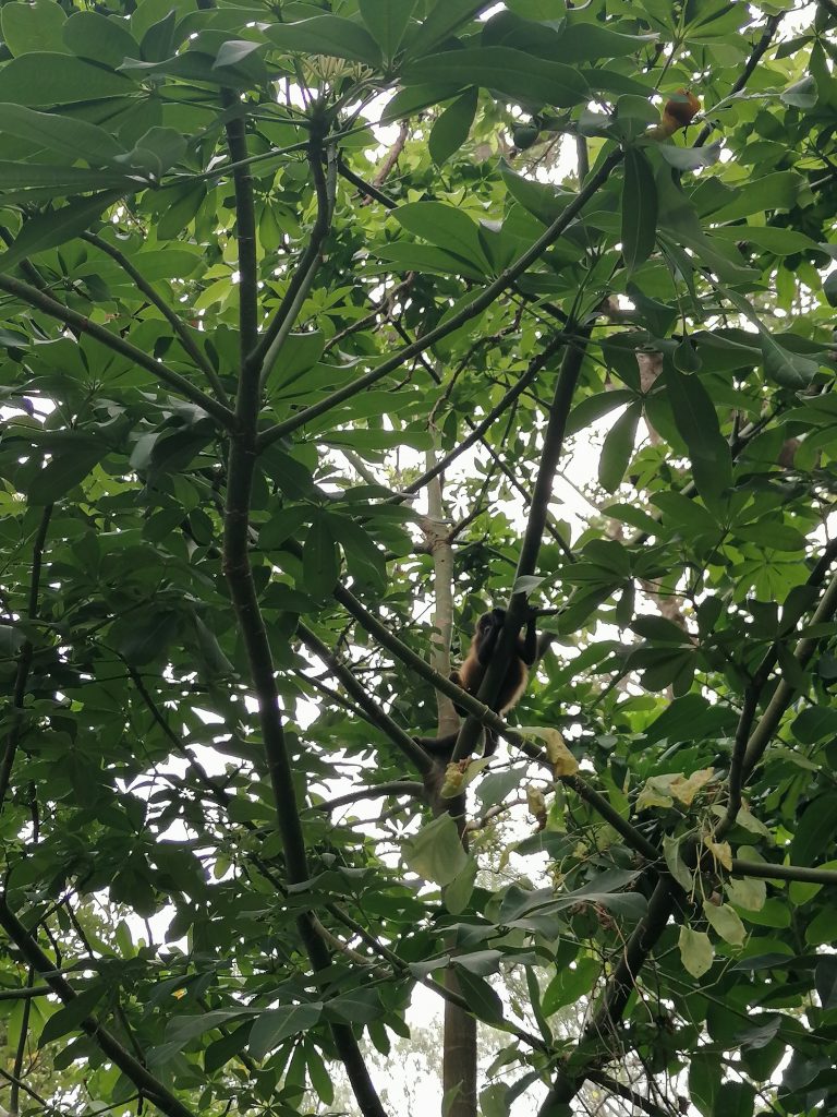 Während ich spaziere, vergesse ich den Zeitdruck und genieße die schöne Natur und die Schmetterlinge. Als ich zur Lagune komme, sehe ich einige Affen in den Bäumen… Brüllaffen, wie ich später lerne, aber im Moment sind sie ganz ruhig bei ihrem Mittagsschlaf.