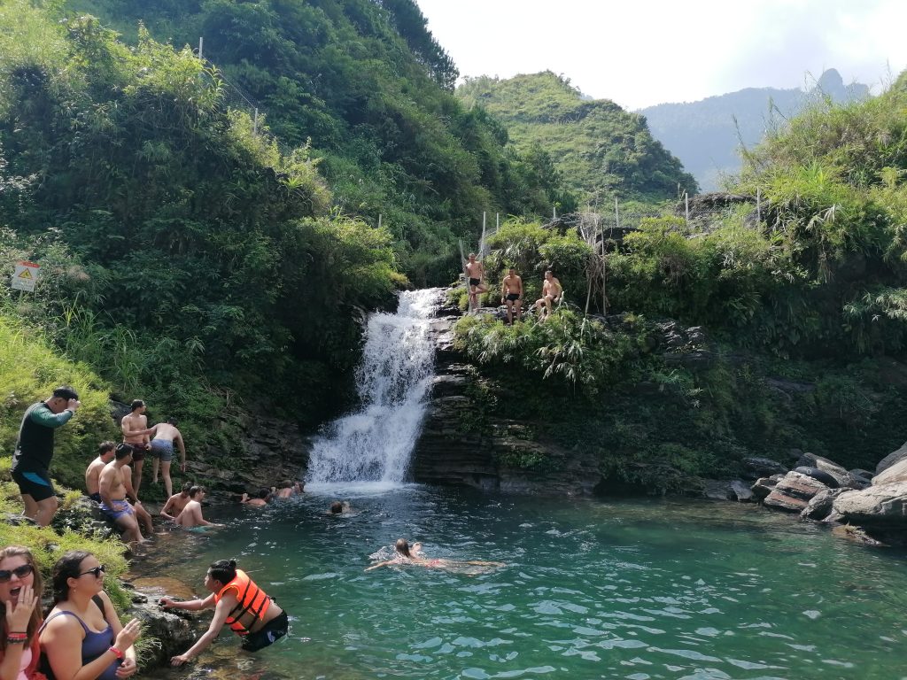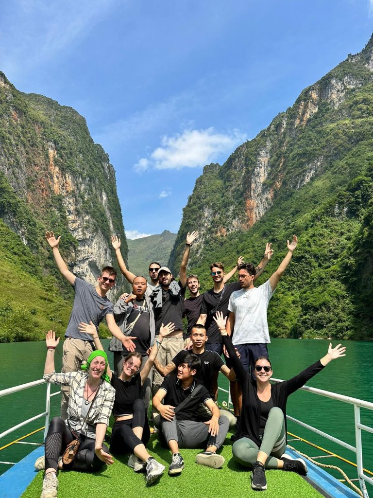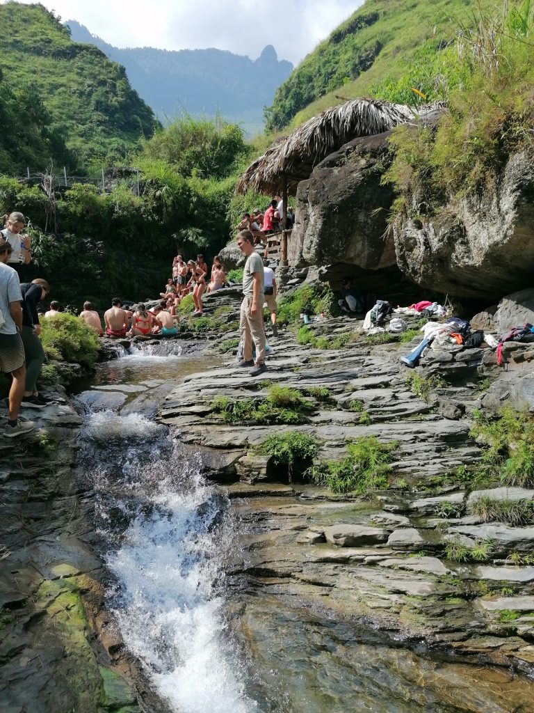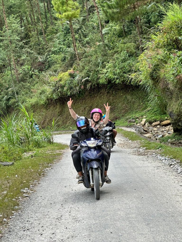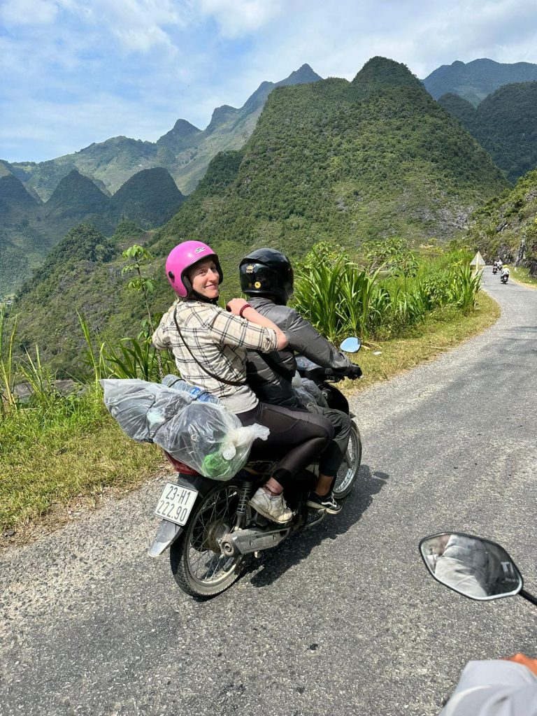Kurz danach packe ich mein Zeug zusammen, nehme nur das nötigste in einem Rucksack mit und bin dann bereit für meine Drei-Tage-Roller-Tour durch das berühmte Ha Giang Loop, eine Rundfahrt durch das nördliche Vietnam. Mein Guide heißt Luan, ist ein Engel und spricht super Englisch, im Gegensatz zu vielen anderen. Ich werde die nächsten drei Tage auf seinem Rücksitz verbringen. Man kann auch selbst fahren, dafür braucht man aber einen passenden Führerschein… oder man muss der Polizei rechtzeitig ausweichen. Ich wäre gern auch selbst gefahren, aber vor allem will ich keinen Stress… und so kann ich die Landschaft vollkommen genießen, ohne mich auf irgendetwas anderes zu konzentrieren. Ich bereue es keine Sekunde, die Tour mit Fahrer gewählt zu haben.