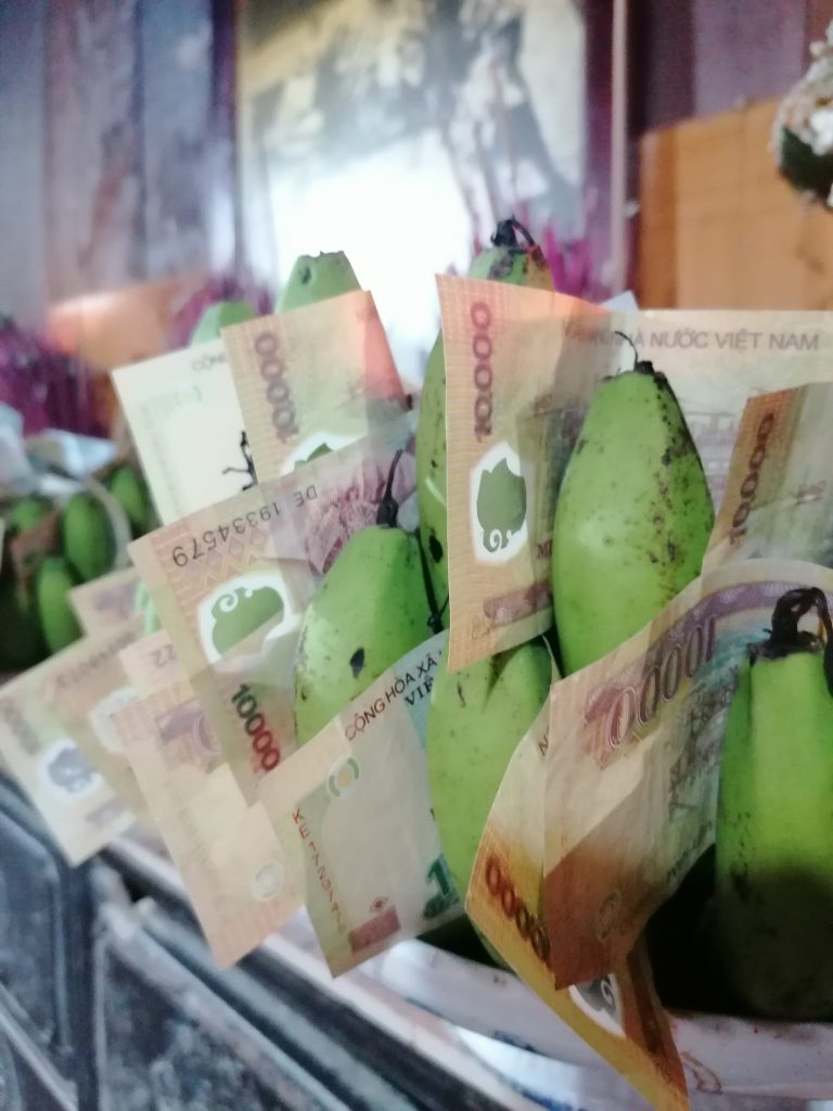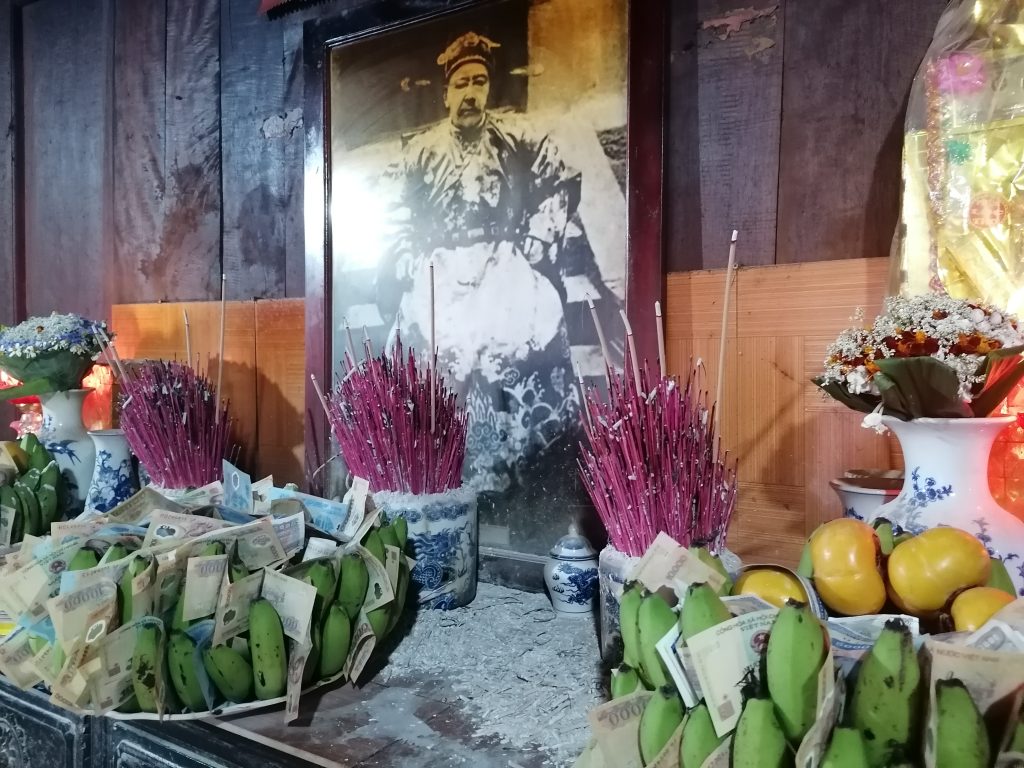 Im Haus finde ich wieder einen Altar mit allen möglichen Opfergaben: Blumen, Geld, Coca-Cola, etc. alles Mögliche in einem kleinen Schrein. Typisch für die Kultur: