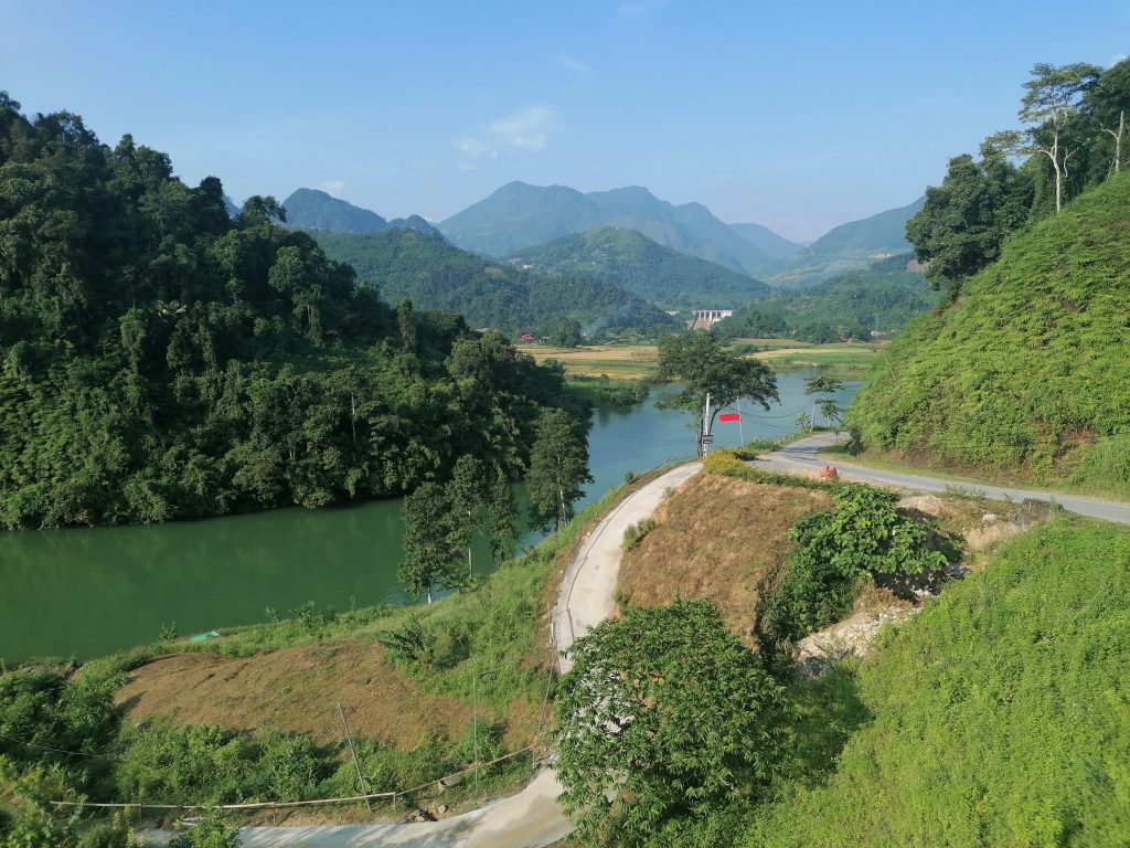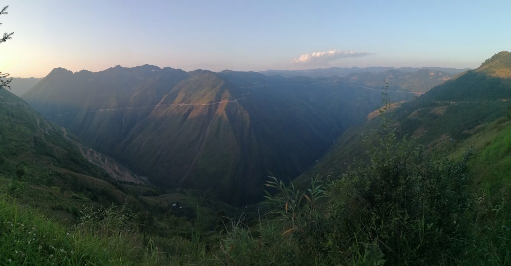 Danach geht es wieder auf den Roller, aber die Landschaft bleibt fabelhaft. Luang erzählt mir während der Fahrt die Geschichte der Straße hier… sie wird auch … Blut- oder Knochenstraße? Bin mir nicht mehr ganz sicher – genannt. Weil so viele Arbeiter während des Baus gestorben sind und ihre Körper oft einfach unter der Straße begraben wurden. Gruselige Sagen sprechen davon, dass man die Seelen nachts hören kann, wenn der Wind durch die Berge pfeift. Ich schaudere und gedenke einen Moment im Stillen den Menschen, die dafür gestorben sind, dass ich heute hier entlang fahren kann.