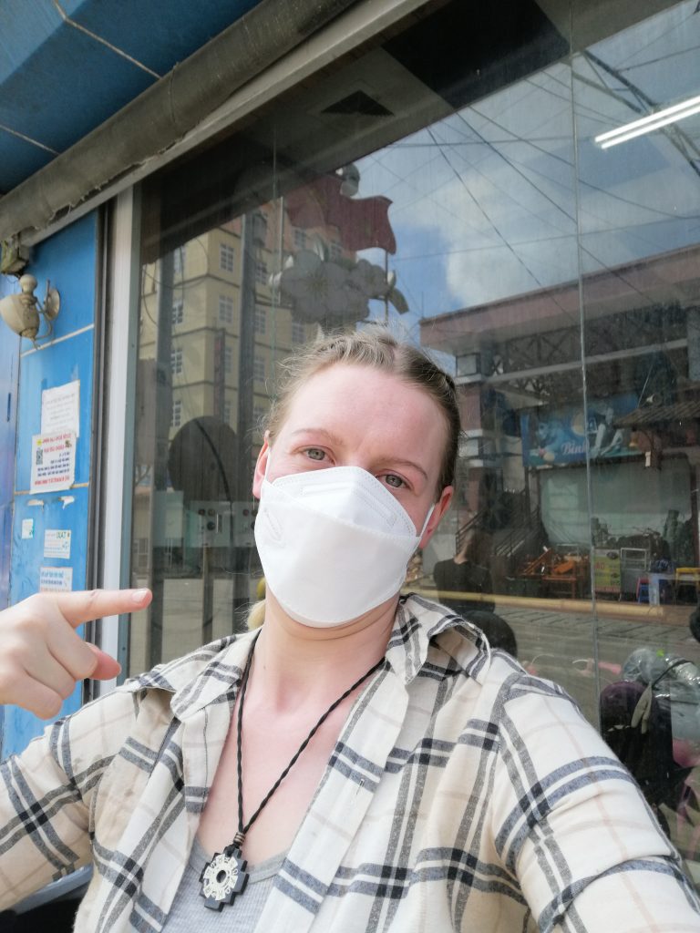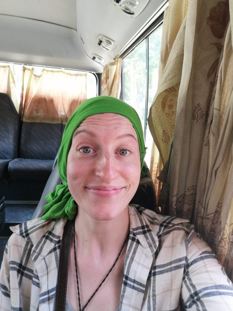 Streckenweise ist die Straße so staubig, dass man uns ein sehr ungeliebtes Accessoires zur Verfügung stellt.