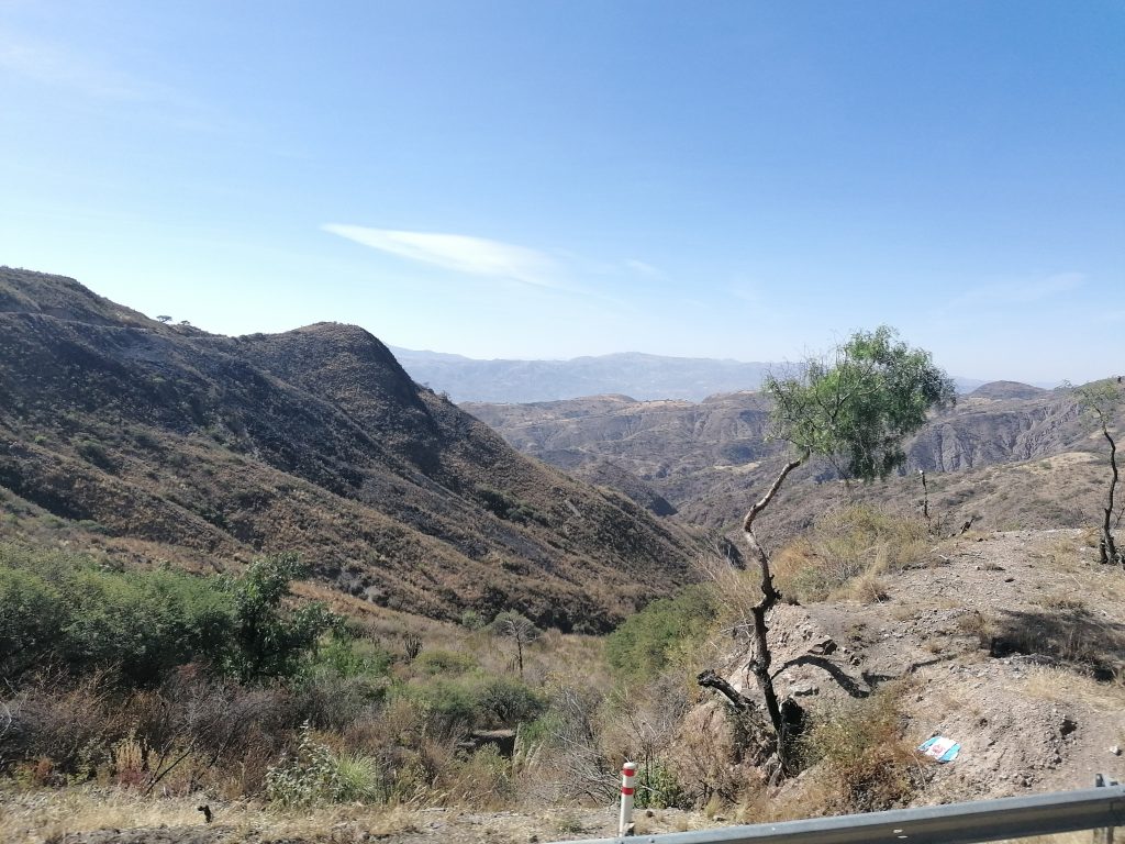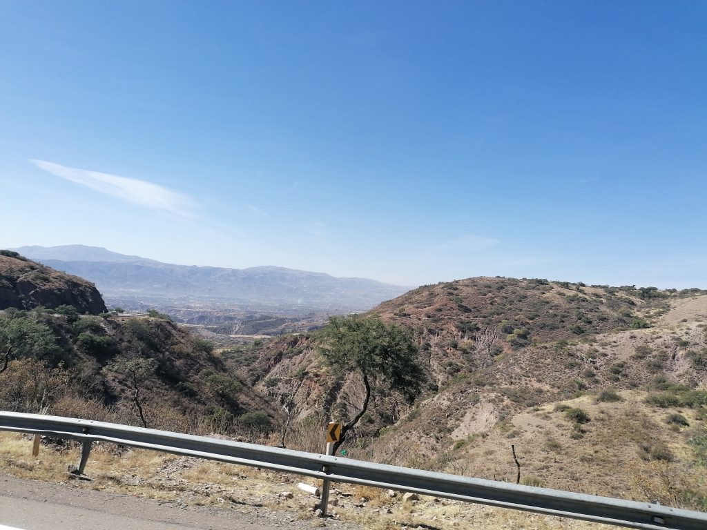 Nach gefühlten zehn Jahren fahren wieder zurück in die Stadt, aber offenbar war das nötig, um die Blockade zu überwinden. Danach fahren wir raus aus der Stadt und rein in eine schöne Berglandschaft. Ja, Busfotos, ich konnt’s wieder nicht lassen.