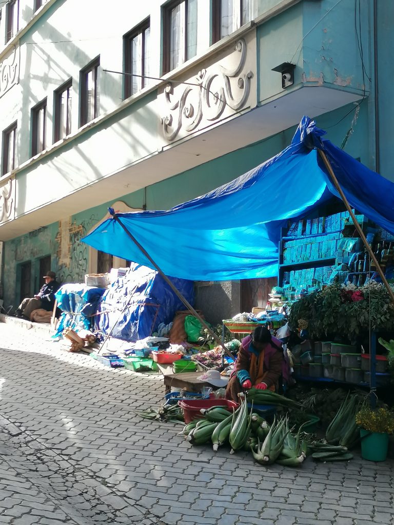 Das hatte ich noch gar nicht erwähnt. Während in Argentinien zwar Regeln nicht allzu sehr gelten, aber alle aufeinander aufpassen, ist in Bolivien das Gegenteil der Fall. Jeder fährt wie er will und hält voll auf den anderen zu, bis irgendeiner nachgeben muss oder es zu einem riesigen Chaos kommt. Auch auf Fußgänger wartet keiner, man wartet ewig oder man riskiert sein Leben, während die Taxis auf einen zurasen. Taxis! Hupen einen hier an, immer ständig, es nervt elendig. Wenigstens kriege ich die dummen Anmachsprüche nicht mit, weil ich meistens zu sehr aufs Handy und den richtigen Weg fokussiert bin.