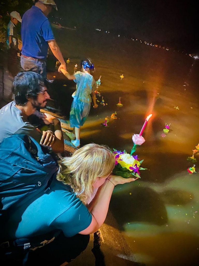 Rosalyn und ihre Familie machen es uns vor und ich beobachte die Menschenmenge, die nach einander, jeder für sich, seine Sorgen ins Boot setzt und loslässt… und wie sich der See so in ein kleines buntes Lichtermeer verwandelt.
