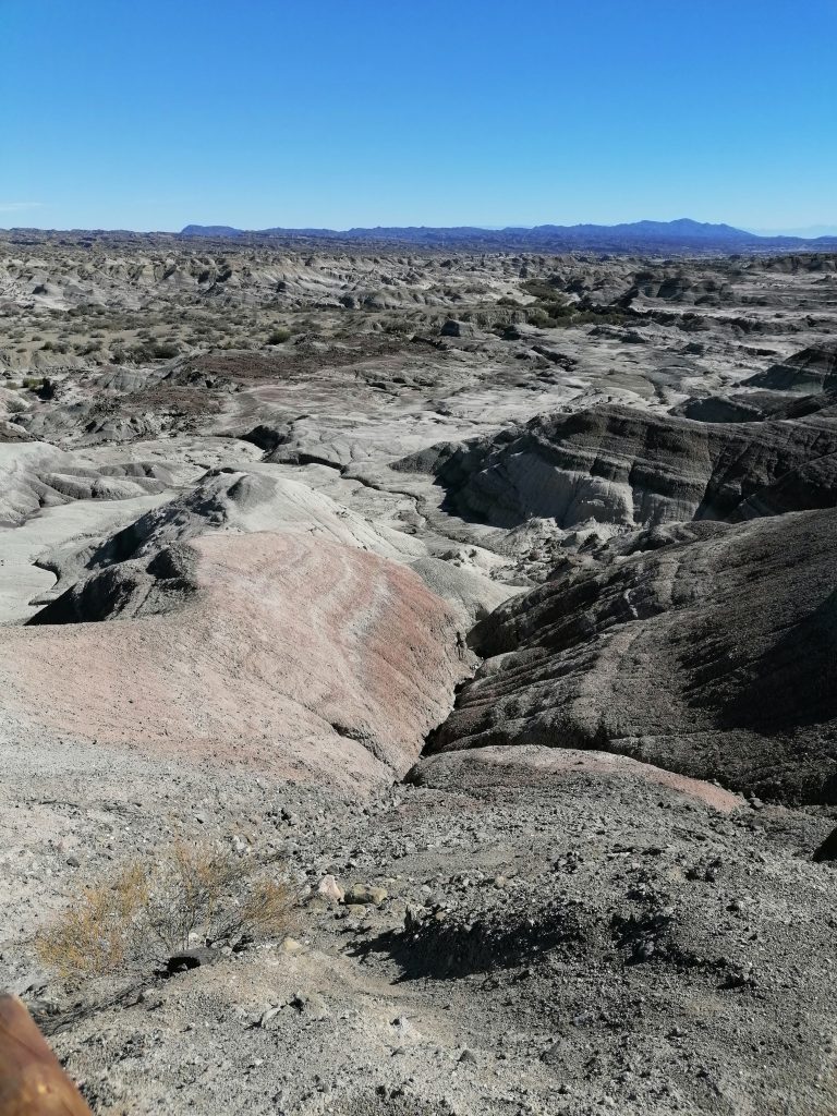 An unserem ersten Stopp wird klar, warum es „Valle de la luna“ heißt. Vom Aussichtspunkt aus haben wir einen fantastischen Überblick über die mondartigen Felsformationen. Das Tal selbst hat viele Namen. Die Namensgebung hängt auch damit zusammen, dass der Park in den frühen 70er Jahren zum Nationalpark erklärt wurde, wenige Jahre nach der Mondlandung und den ersten Bildern der Mondoberfläche.