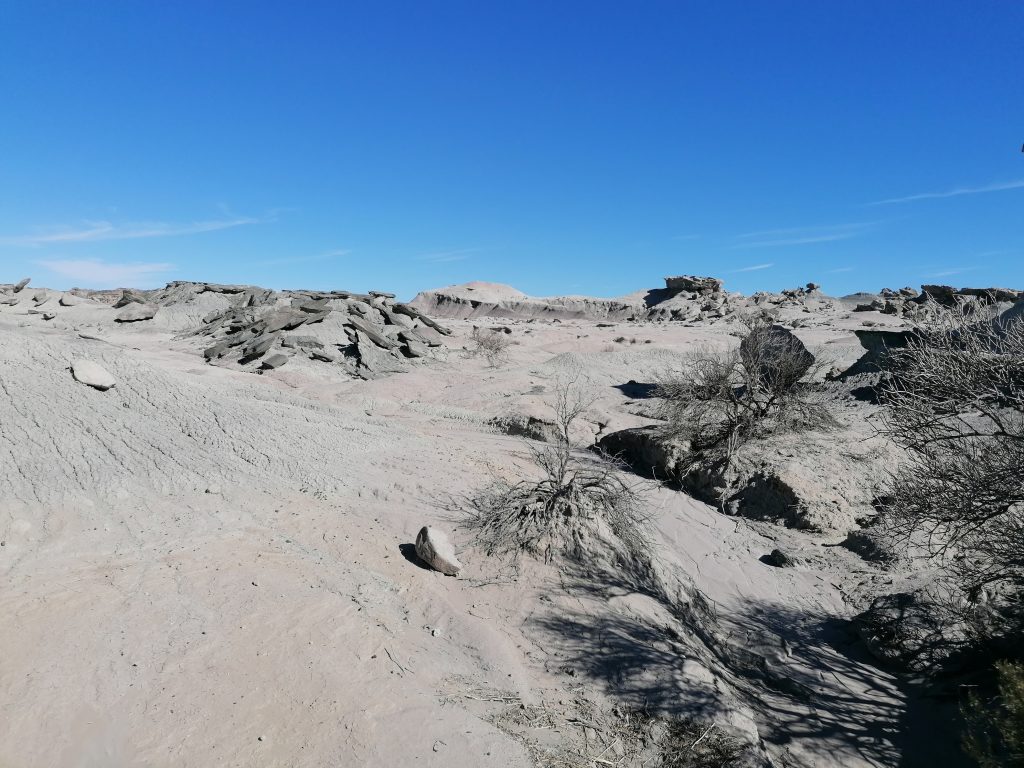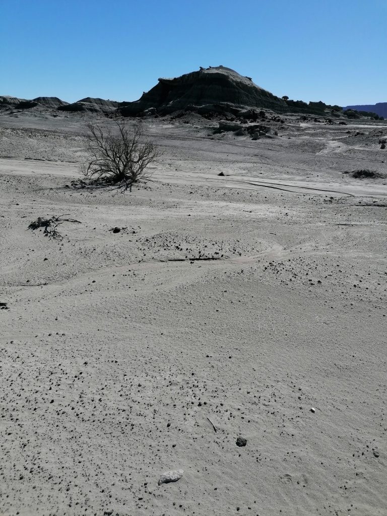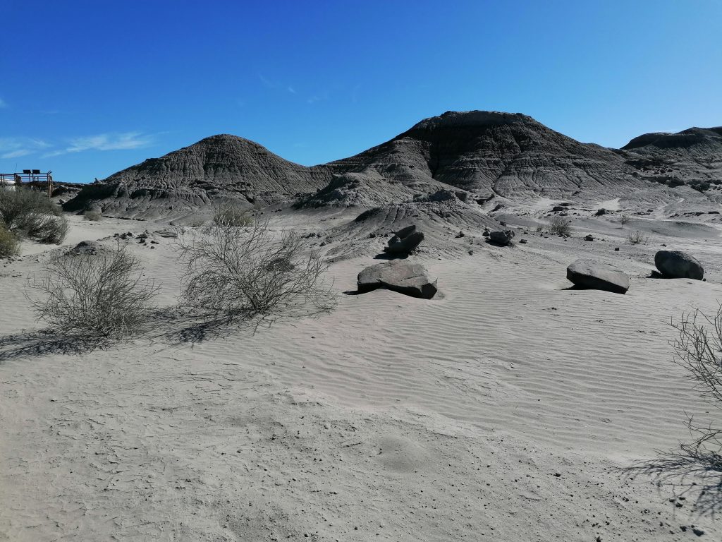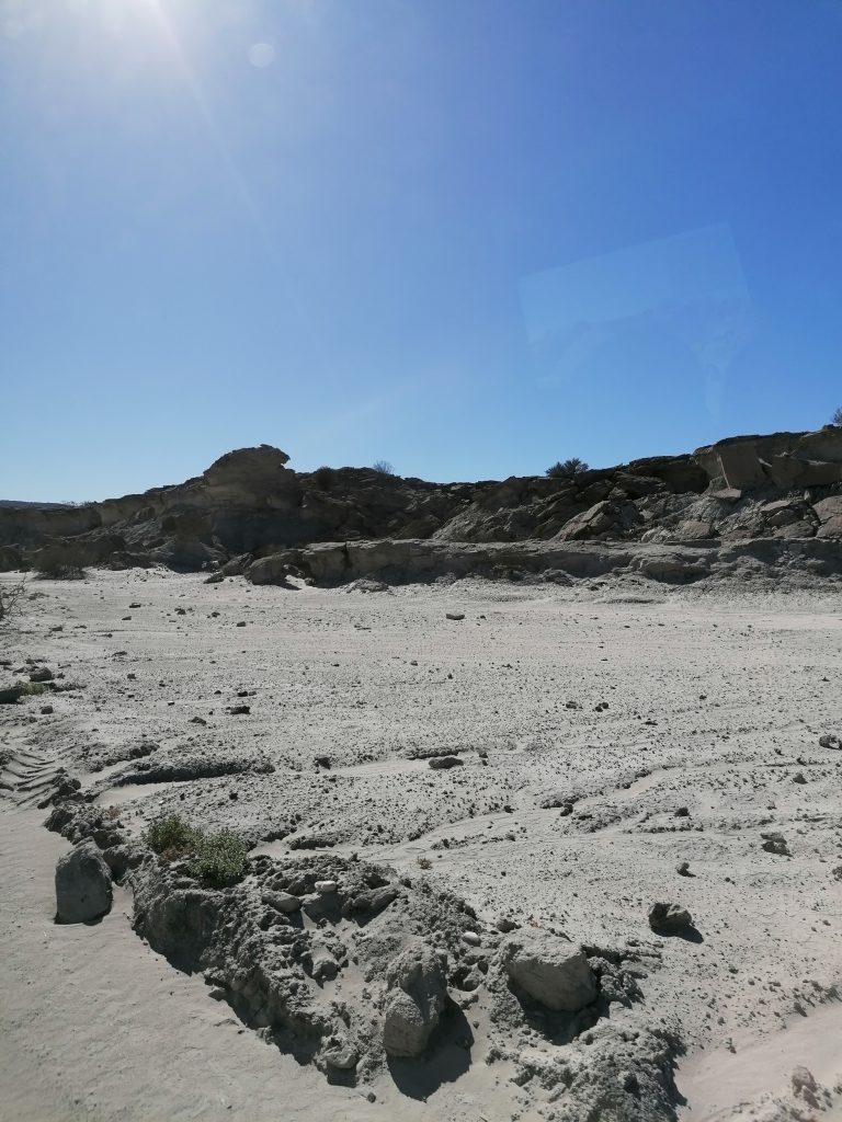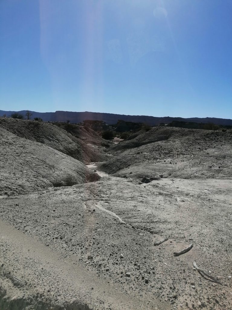 „Dort“ ist heute der Nationalpark Ischigualasto oder besser bekannt: Valle de la luna (Tal des Mondes). Zuerst haben wir die Möglichkeit aufs Klo zu gehen und das angrenzende Museum zu besuchen, wo ich von etwas unerwartetem überrascht werde.